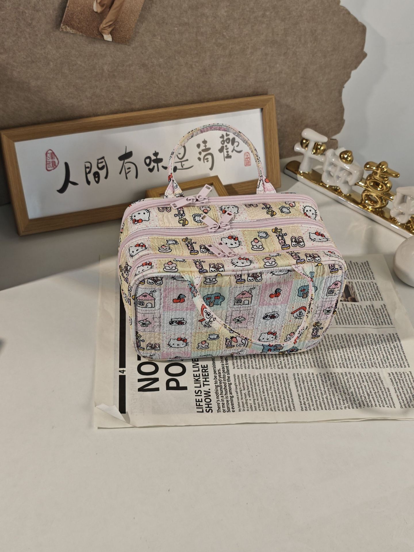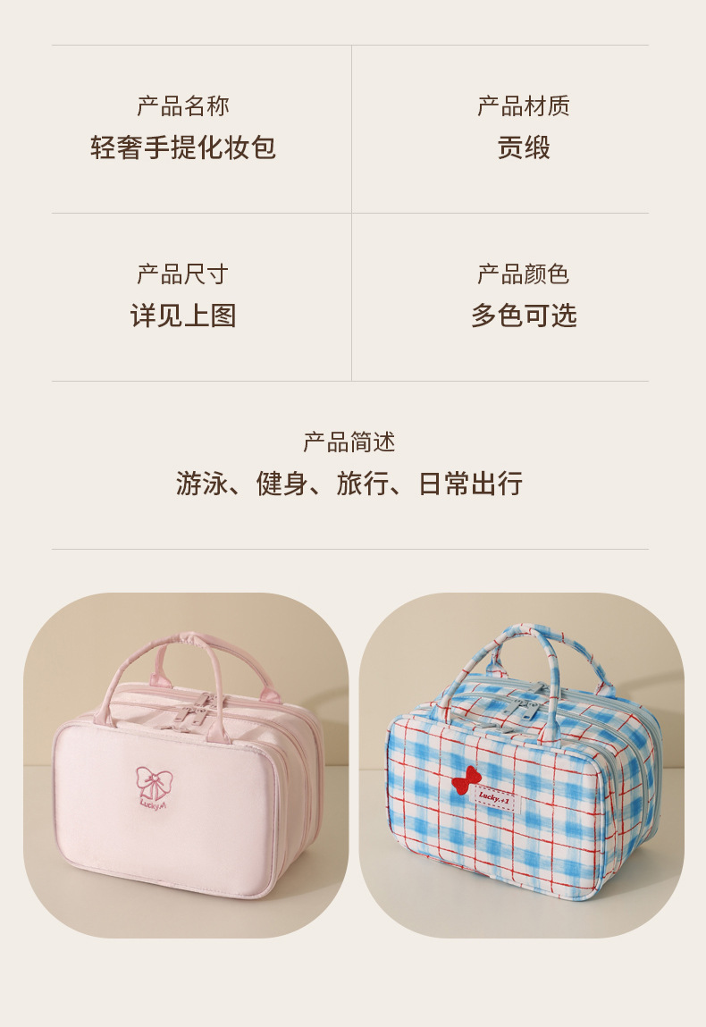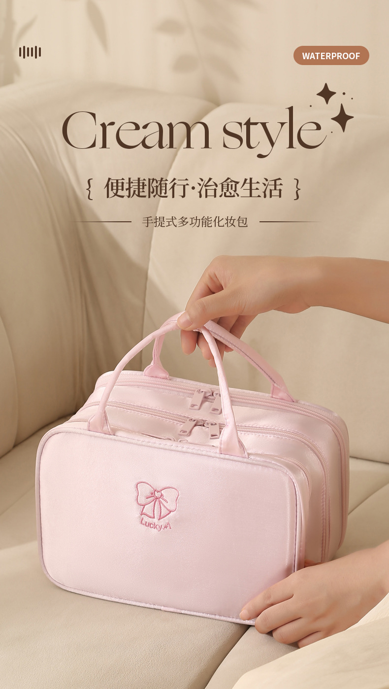 화장품 가방 여성용 휴대용 대용량 여행 더블 지퍼 보관 가방 귀여운 휴대용 파티션 더블 레이어 정리 세면 용품 가방