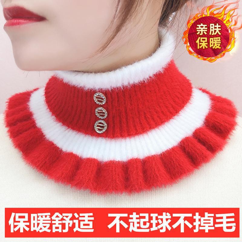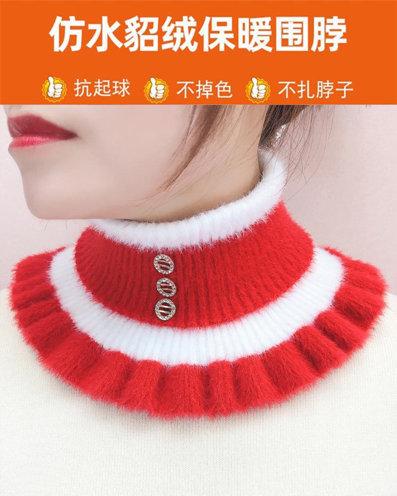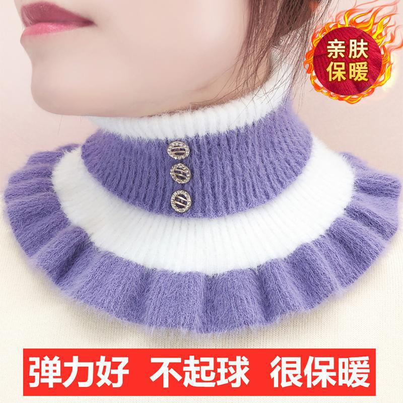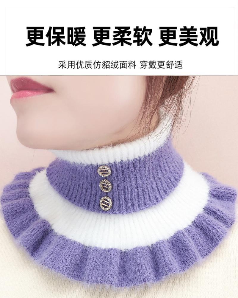 두꺼운 모조 밍크 벨벳 가짜 칼라 2023 새로운 경추 보호 니트 스트라이프 라펠 스카프 여성용 따뜻하고 다재다능한 목 커버스토어 가기