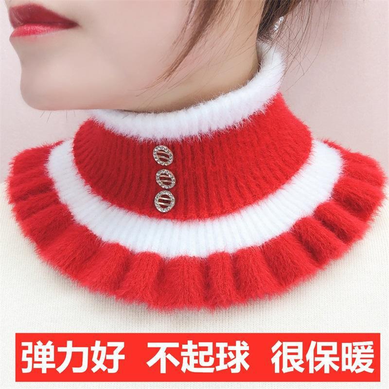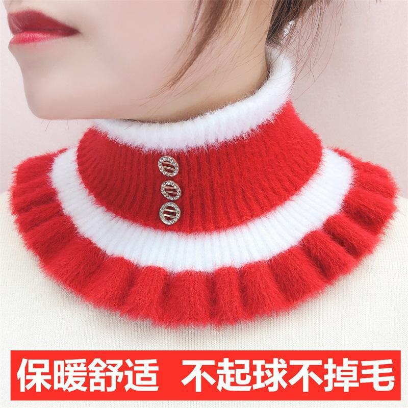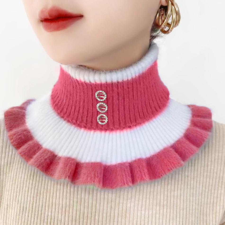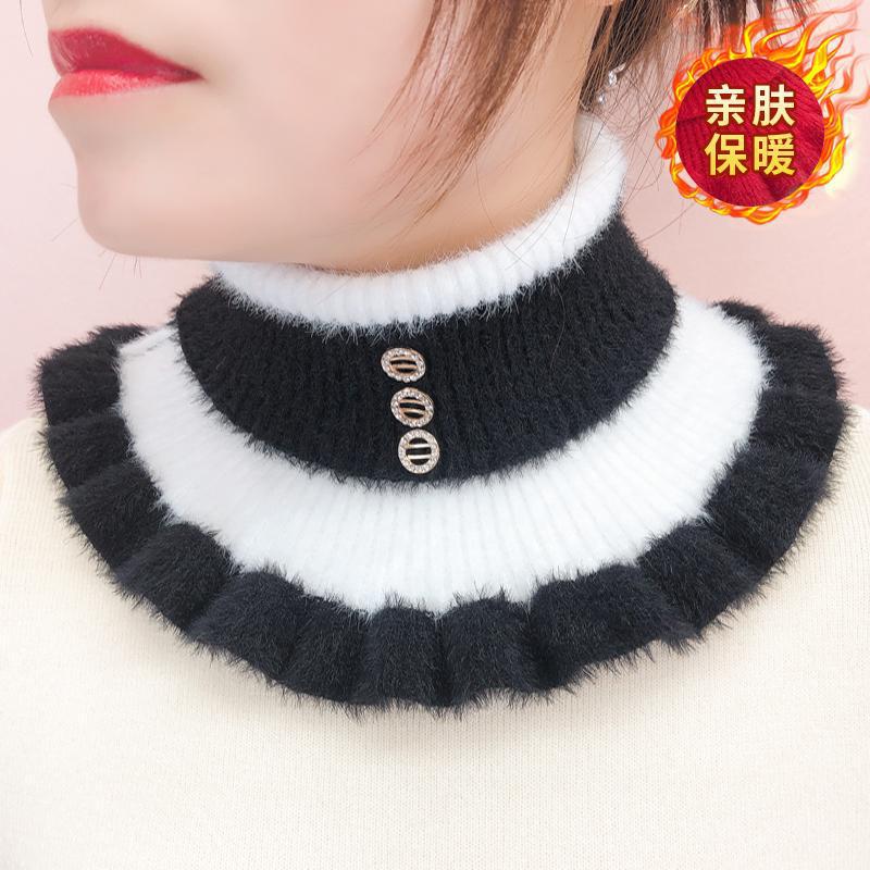 두꺼운 모조 밍크 벨벳 가짜 칼라 2023 새로운 경추 보호 니트 스트라이프 라펠 스카프 여성용 따뜻하고 다재다능한 목 커버