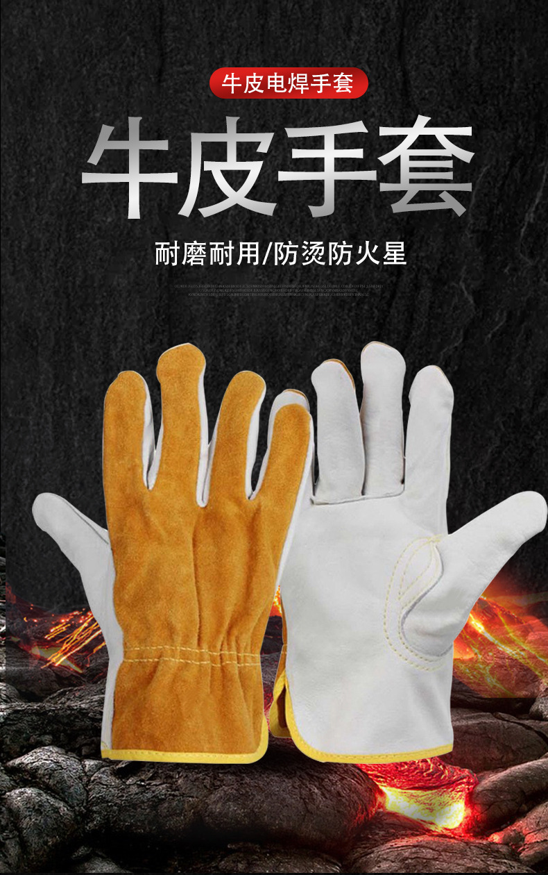 소가죽 용접 장갑, 내구성 및 내열성, 용접공 용접 보호 노동 보호 장갑, 짧은 소가죽 보호 장갑