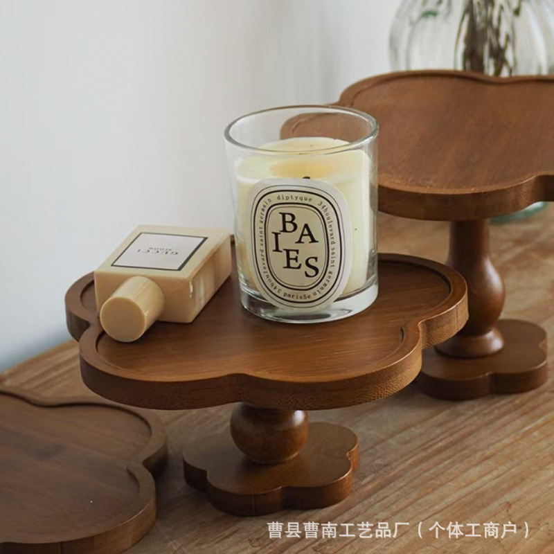 프렌치 하이 트레이 탁상용 아로마테라피 캔들 트레이 원목 레이스 모양의 페이스트리 디저트 트레이 하이 트레이스토어 가기
