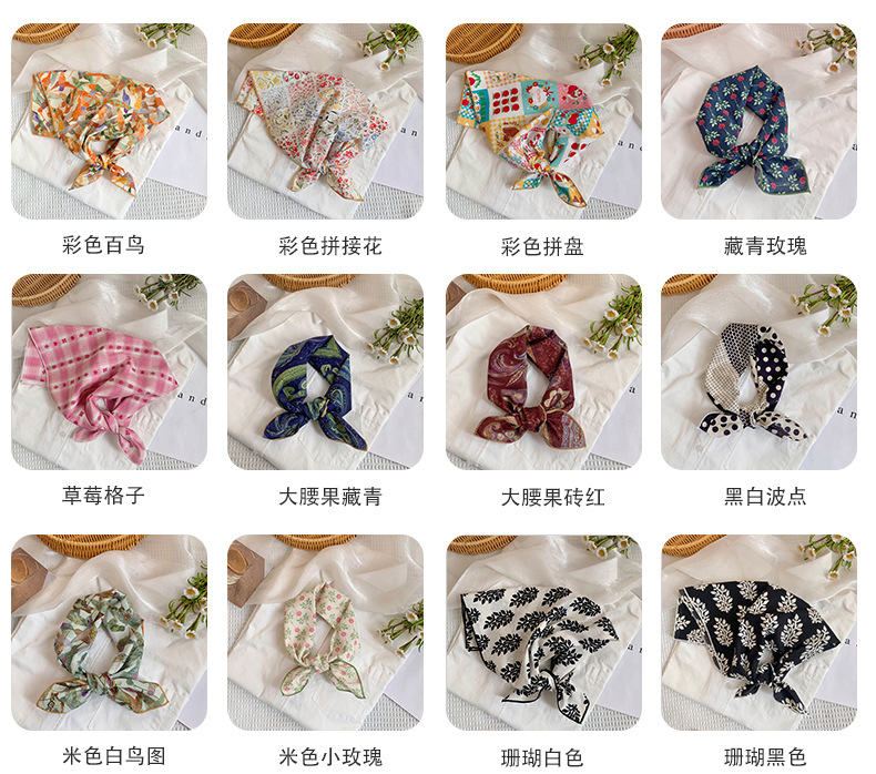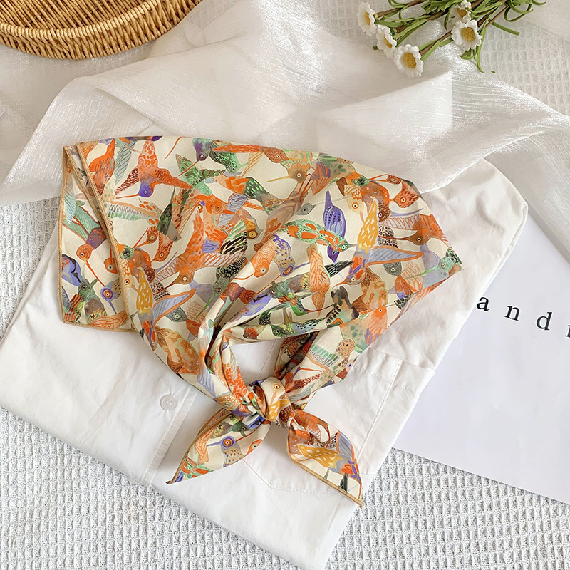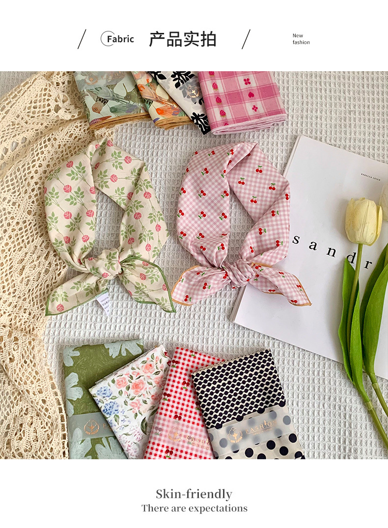 2025 한국 스타일 여성용 작은 실크 스카프 봄, 가을 다목적 기질 58CM 순면 작은 사각형 스카프 장식 작은 스카프 작은 스카프스토어 가기