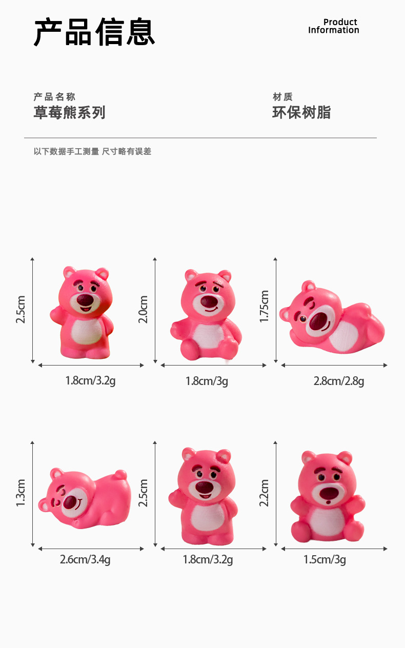 크리 에이 티브 딸기 곰 수지 공예 장식품 diy 단색 귀여운 수제 작은 동물 장식품스토어 가기