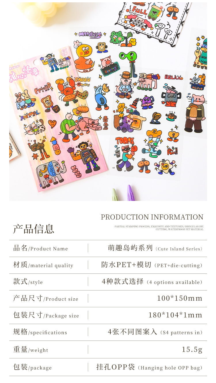 귀여운 섬 시리즈 PET 스티커 4 귀여운 만화 크리 에이 티브 diy 휴대 전화 케이스 장식 재료 스티커스토어 가기