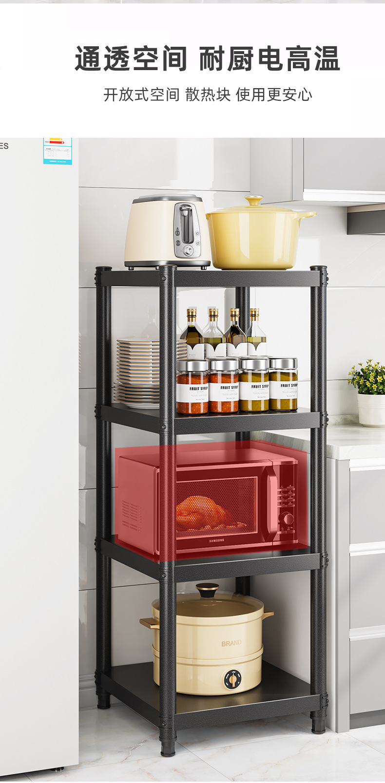 두꺼운 가정용 전자 레인지 슬롯 주방 탄소강 보관 랙 바닥에 놓인 다층 냄비 보관 랙 그릇 및 접시 랙스토어 가기