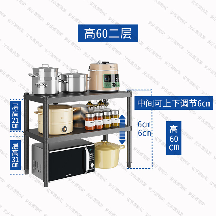 두꺼운 가정용 전자 레인지 슬롯 주방 탄소강 보관 랙 바닥에 놓인 다층 냄비 보관 랙 그릇 및 접시 랙