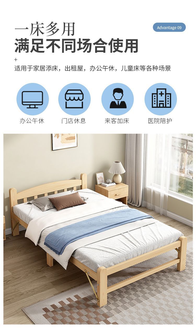 모든 단단한 나무 접이식 침대 싱글 침대 사무실 점심 시간 침대 홈 침대 임대 방 어린이 유아용 침대