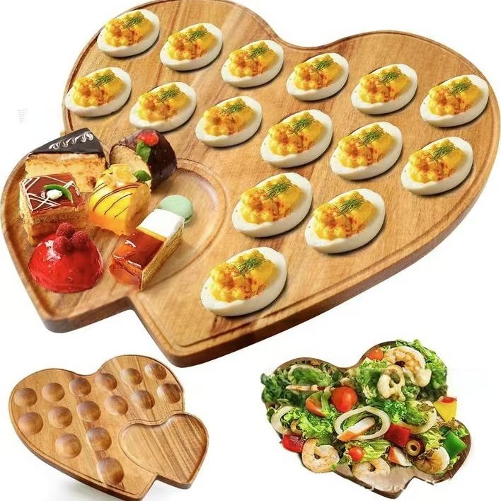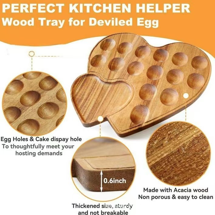 가정용 하트 모양의 계란과 오리알을 위한 나무로 되는 계란 트레이 여러 격자 트레이 단단한 나무 악마 계란 트레이스토어 가기