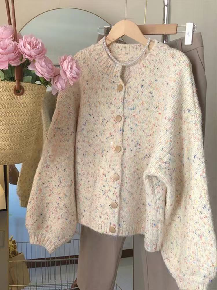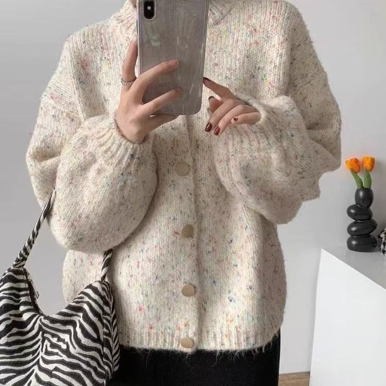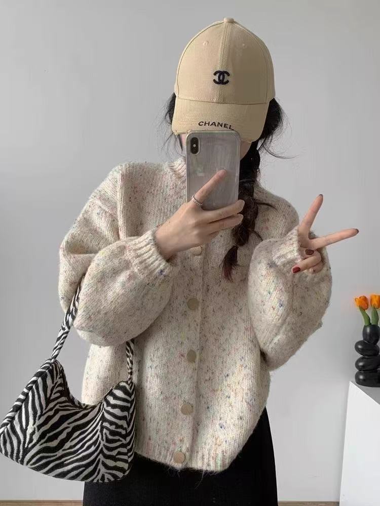 여성을위한 한국 스타일 부드러운 스타일 라운드 넥 니트 카디건 2023 새로운 가을 느슨한 게으른 스타일 스웨터 재킷
