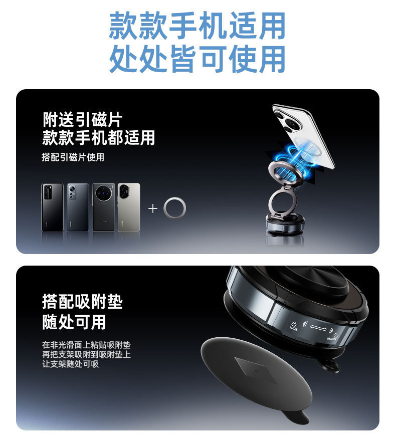 2025 새로운 블랙 기술 자동차 휴대 전화 홀더 범용 진공 자기 흡입 컵 휴대 전화 네비게이션 홀더