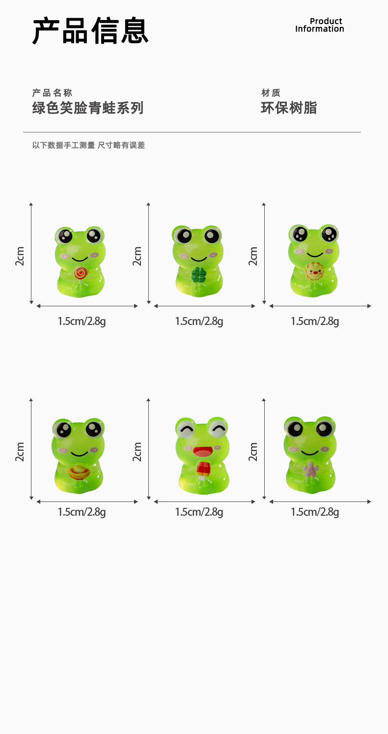 창의적인 3차원 귀여운 녹색 웃는 개구리 동물 장식품 DIY 수지 공예 액세서리 귀여운 작은 장식품스토어 가기