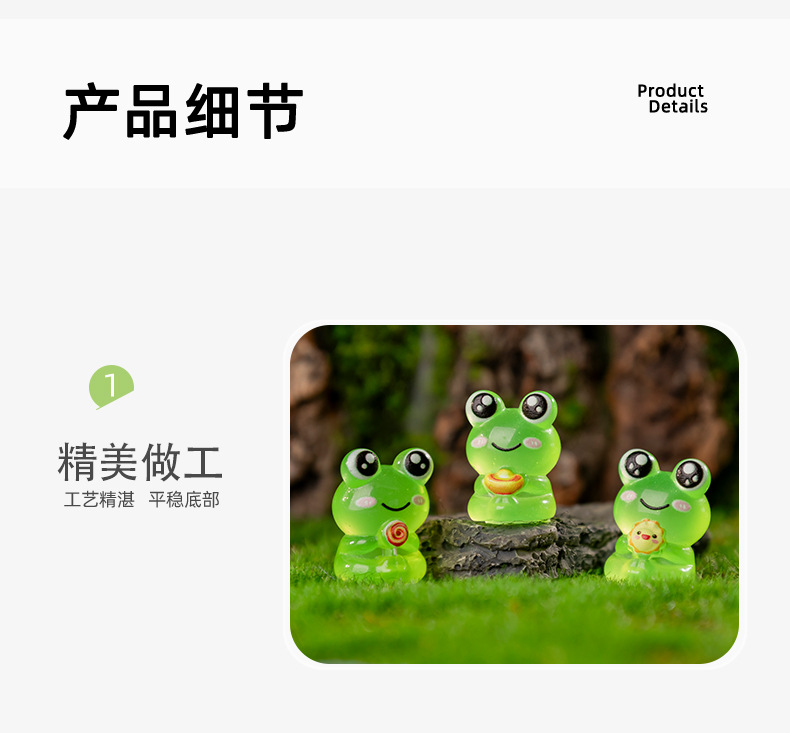 창의적인 3차원 귀여운 녹색 웃는 개구리 동물 장식품 DIY 수지 공예 액세서리 귀여운 작은 장식품