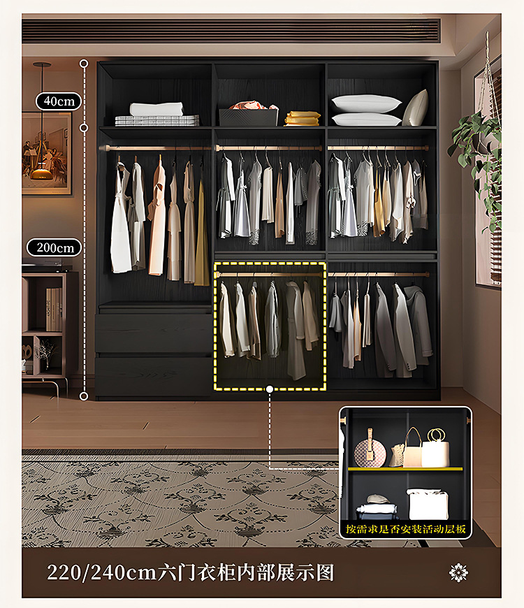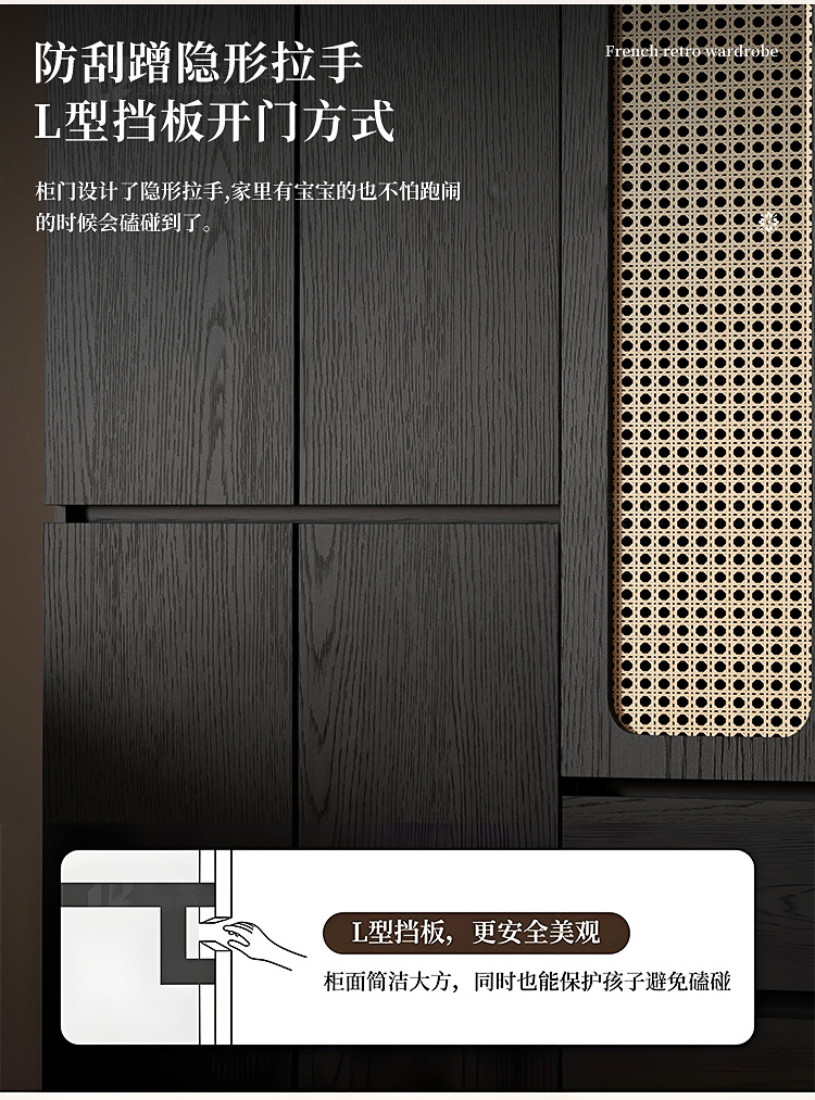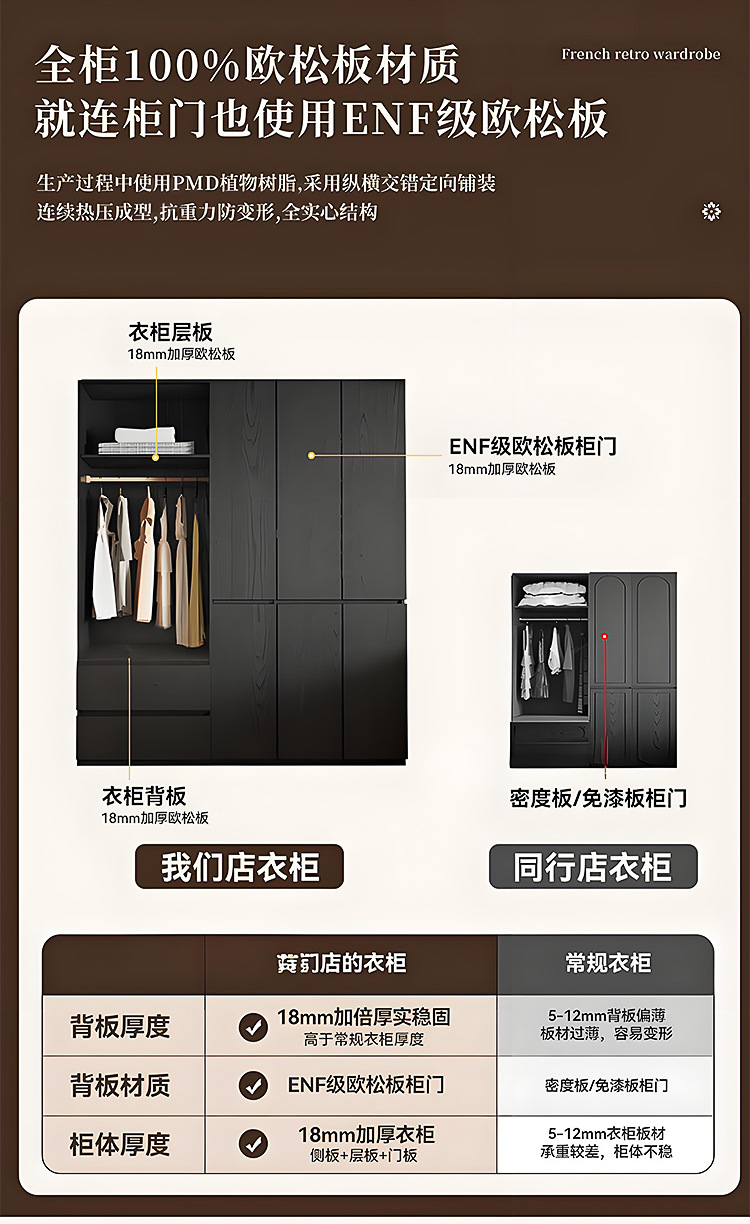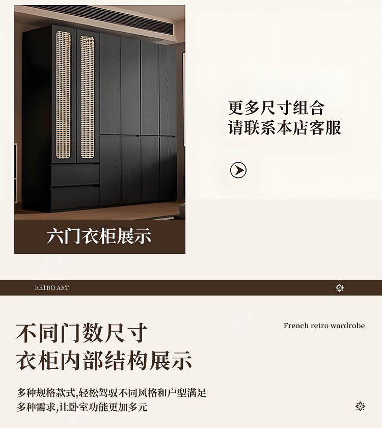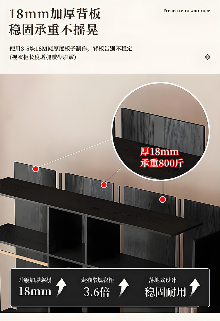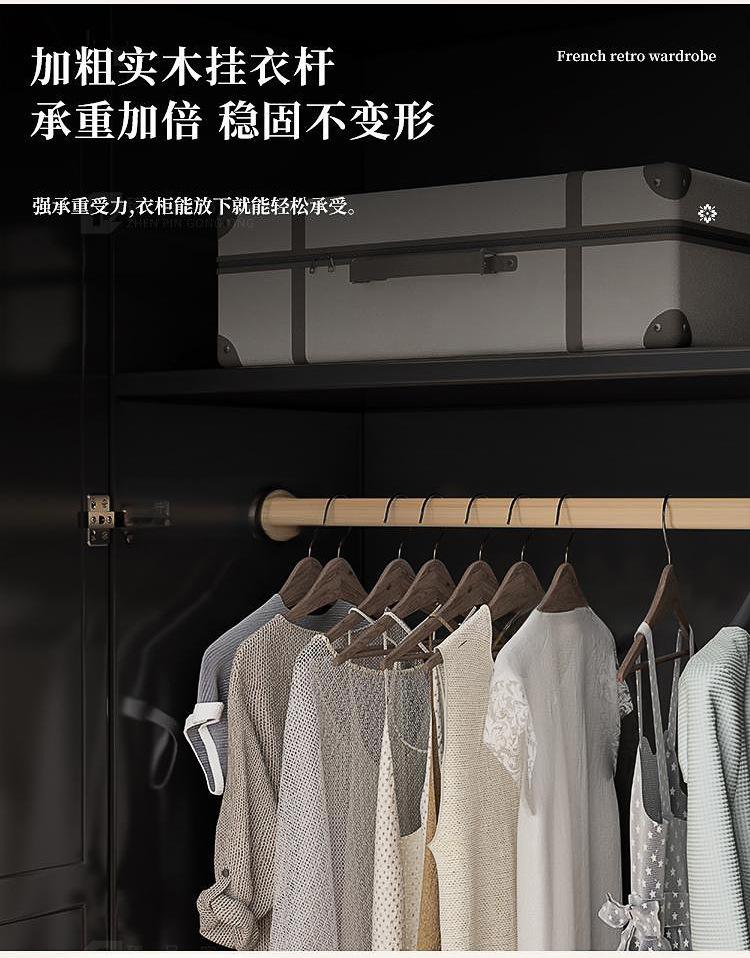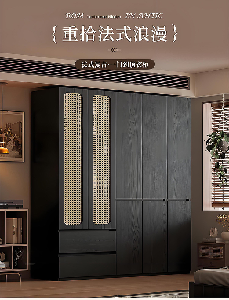 침실 홈 검은색 등나무 옷장 다기능 스윙 도어 단단한 나무 유럽 소나무 판자 중세 스타일 분할 대형 옷장스토어 가기
