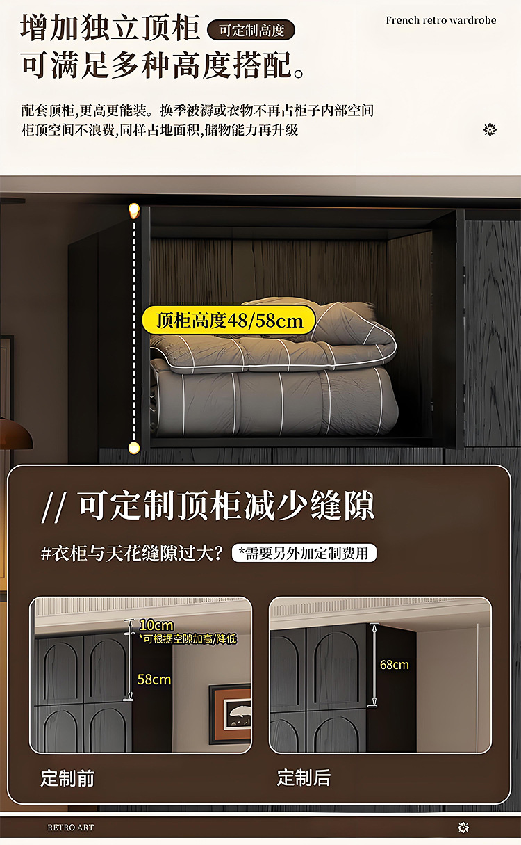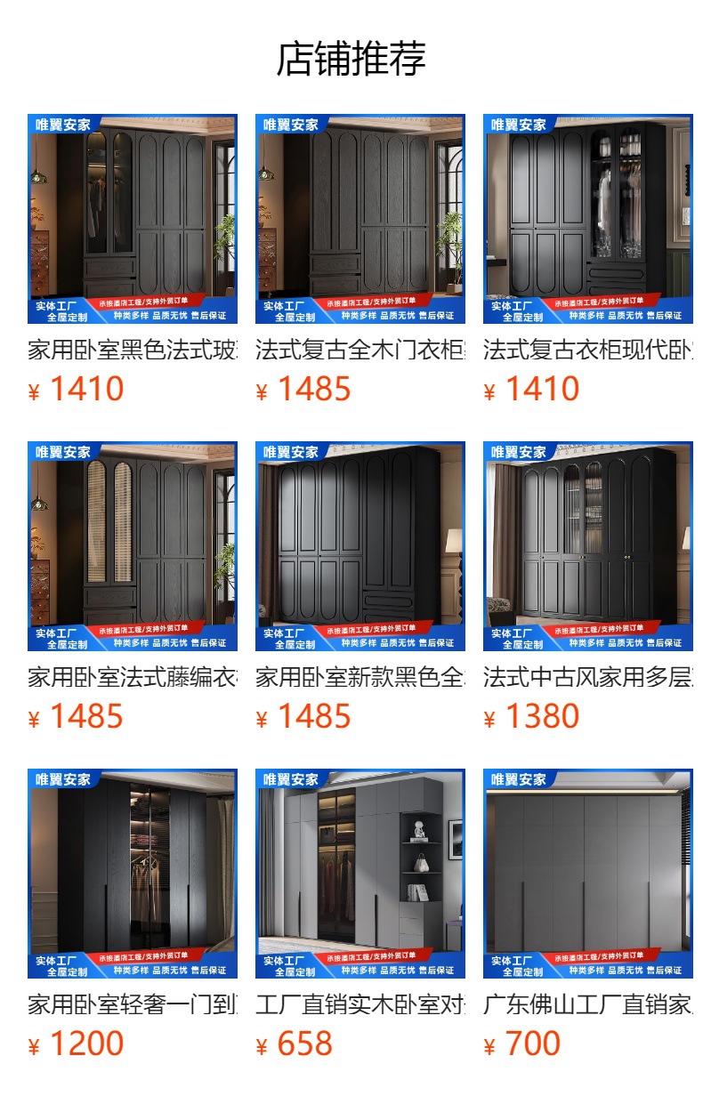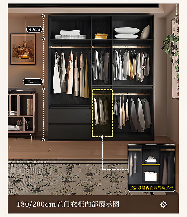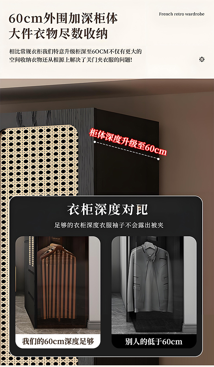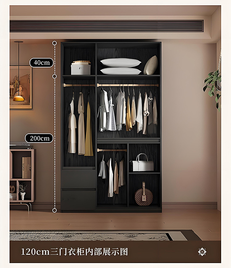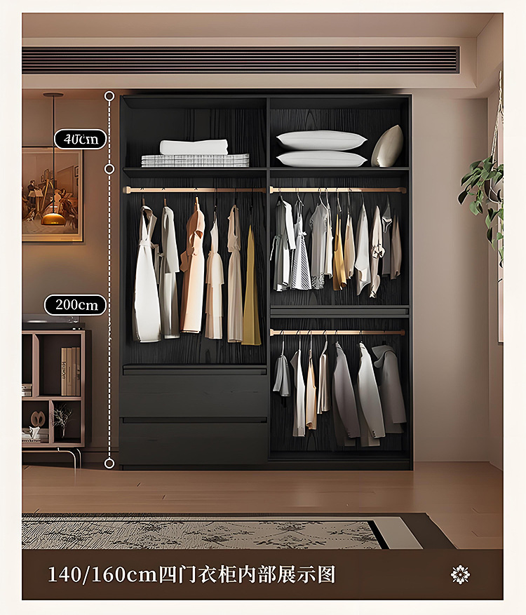 침실 홈 검은색 등나무 옷장 다기능 스윙 도어 단단한 나무 유럽 소나무 판자 중세 스타일 분할 대형 옷장스토어 가기