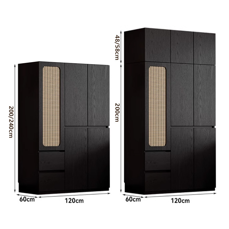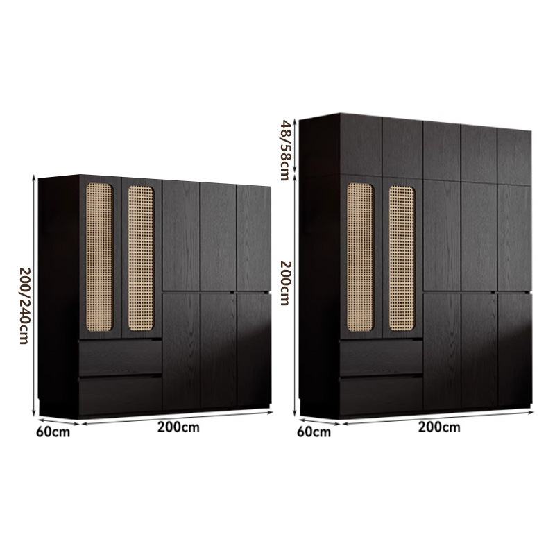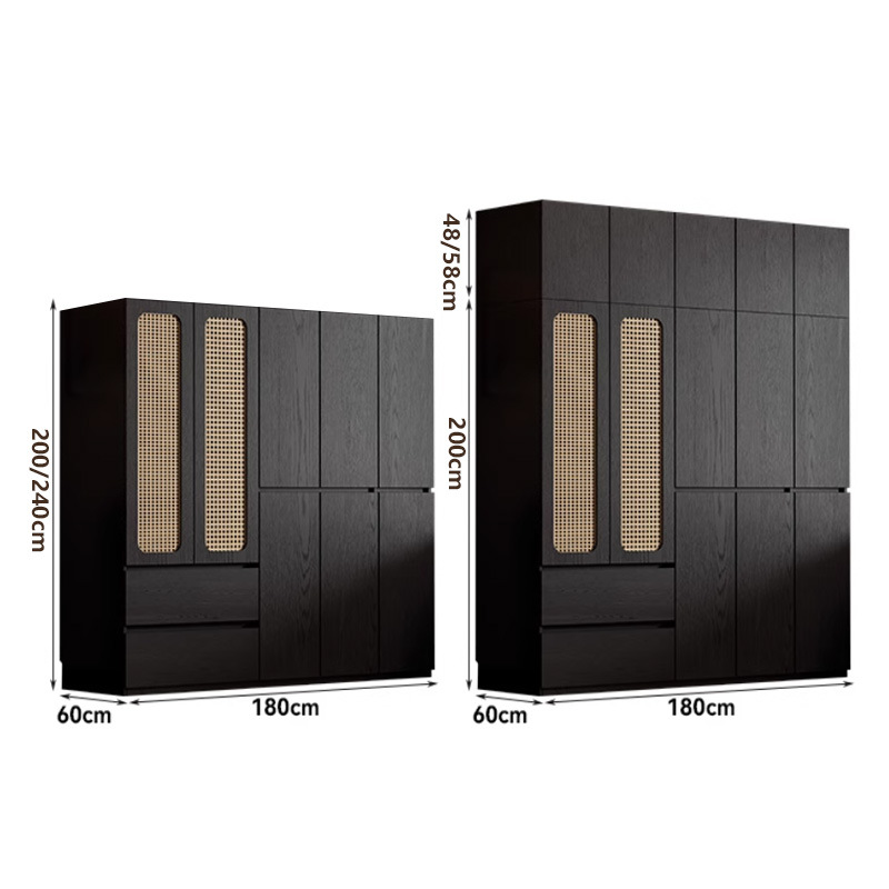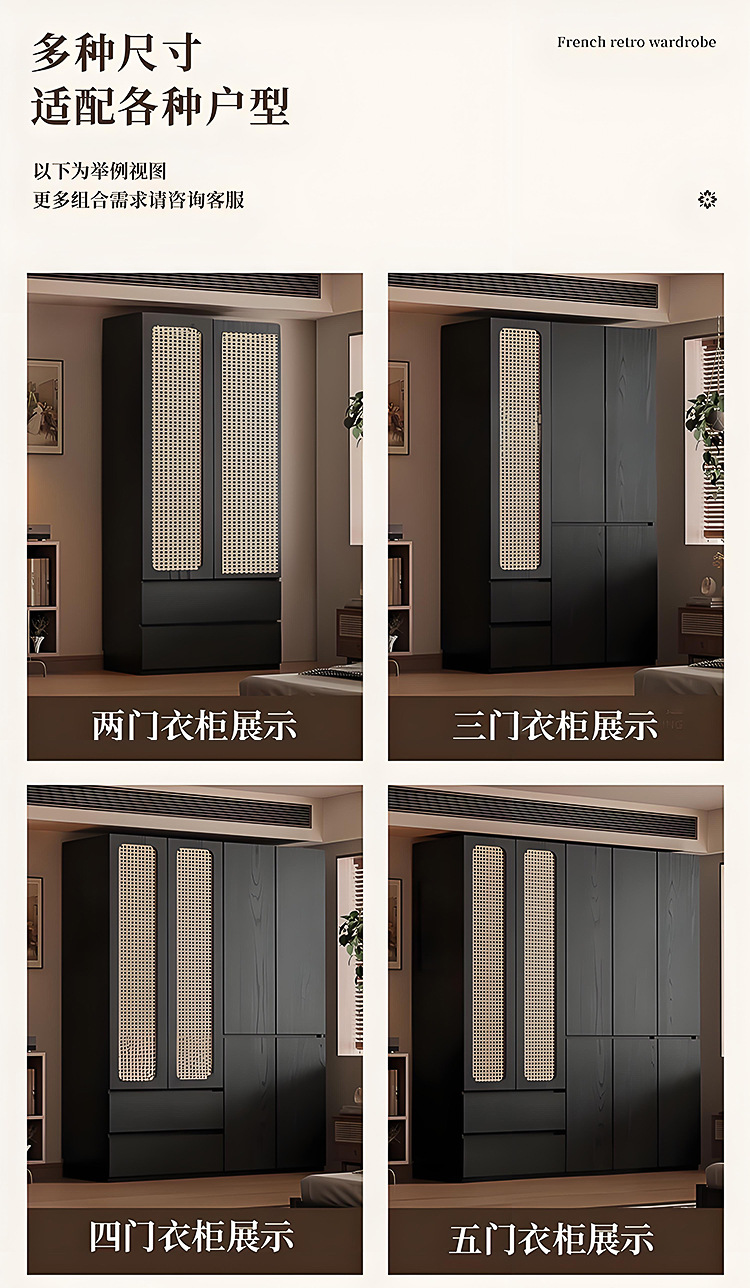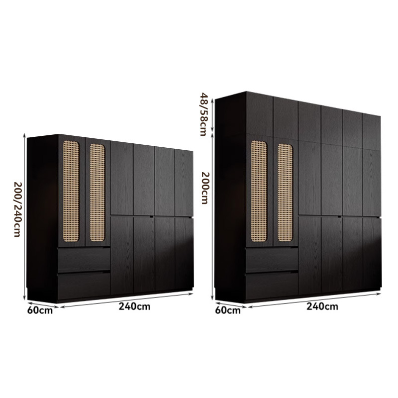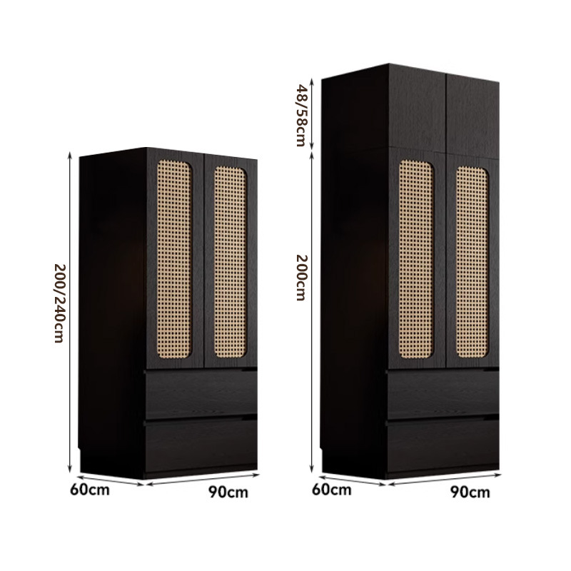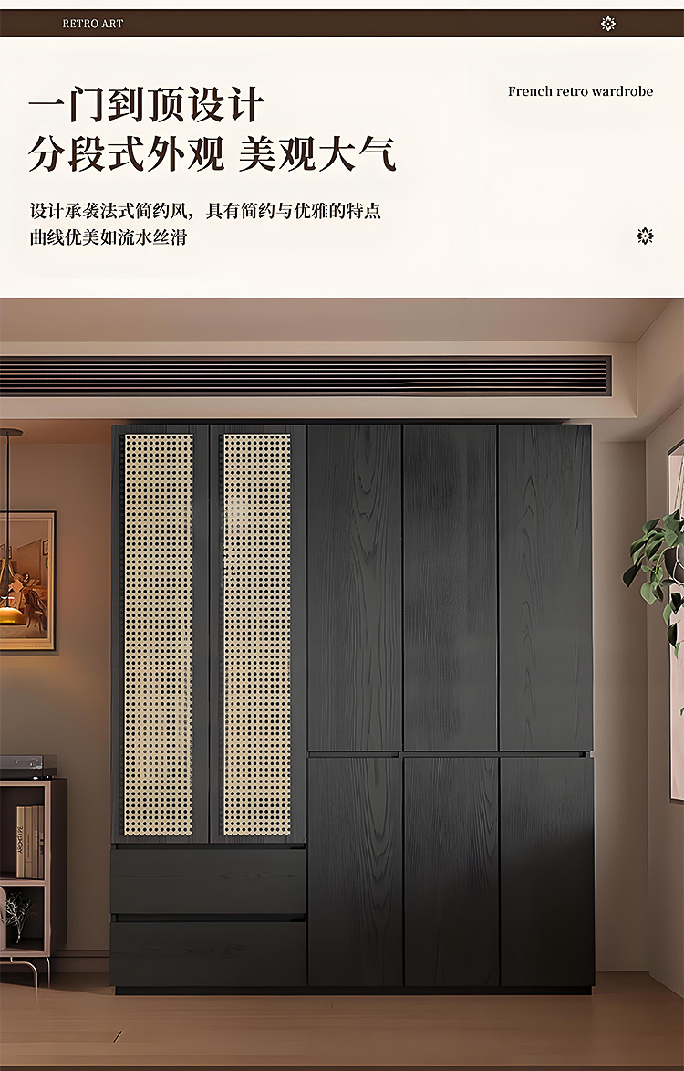 침실 홈 검은색 등나무 옷장 다기능 스윙 도어 단단한 나무 유럽 소나무 판자 중세 스타일 분할 대형 옷장