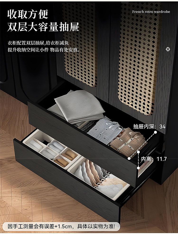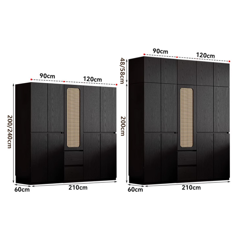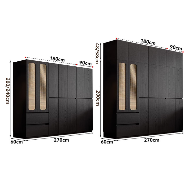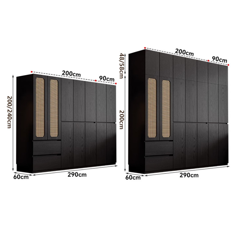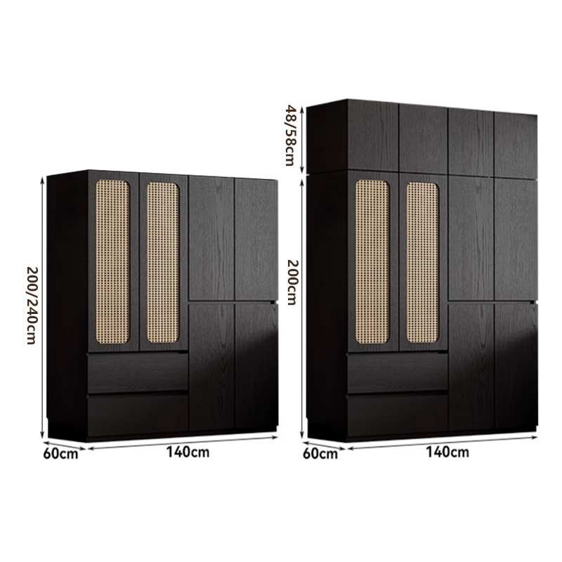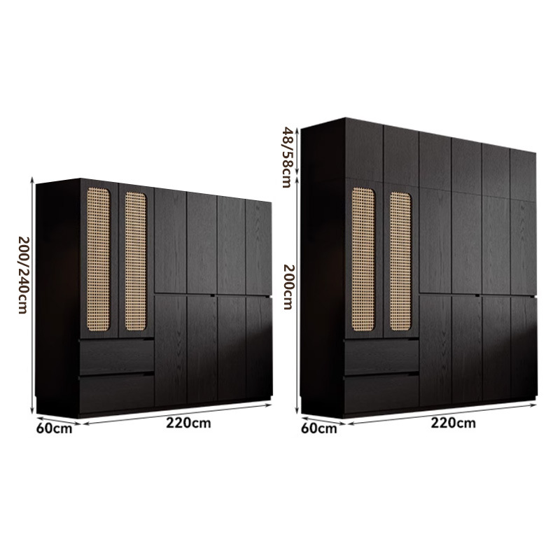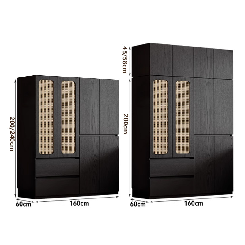 침실 홈 검은색 등나무 옷장 다기능 스윙 도어 단단한 나무 유럽 소나무 판자 중세 스타일 분할 대형 옷장