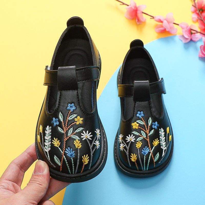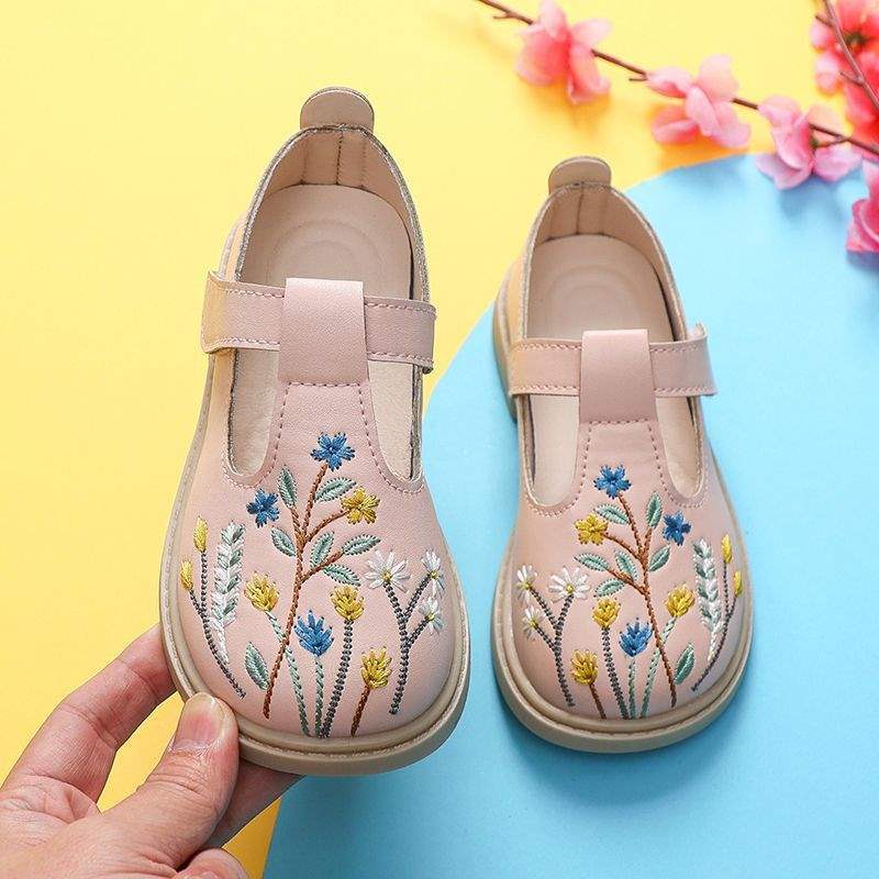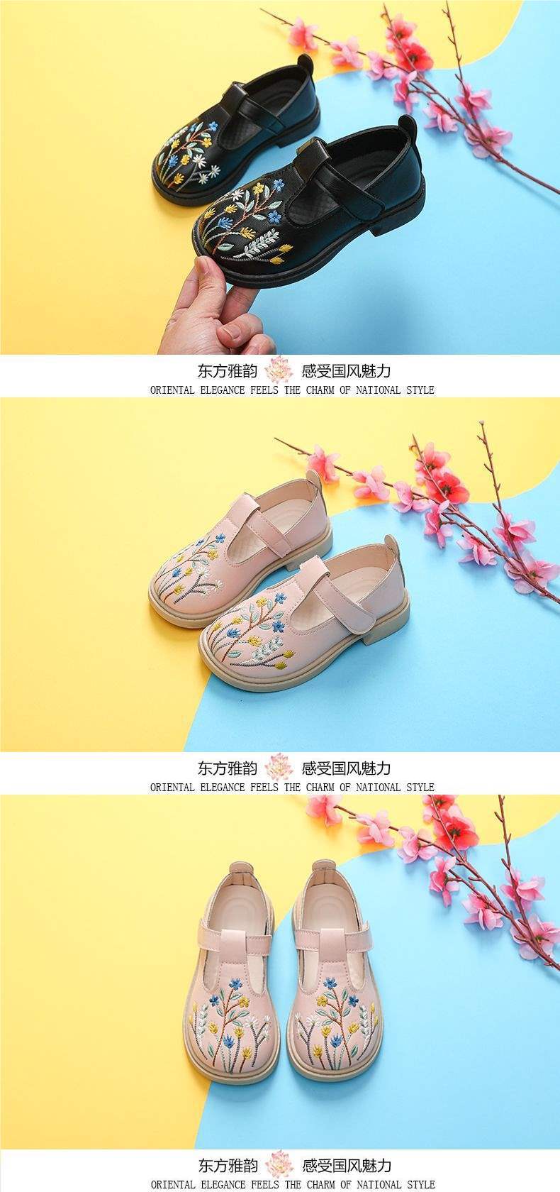 여아용 작은 가죽신, 중국풍 공주신, 여아용 부드러운 밑창 자수 골동품 신발, 어린이용 한복신, 골동품 자수신