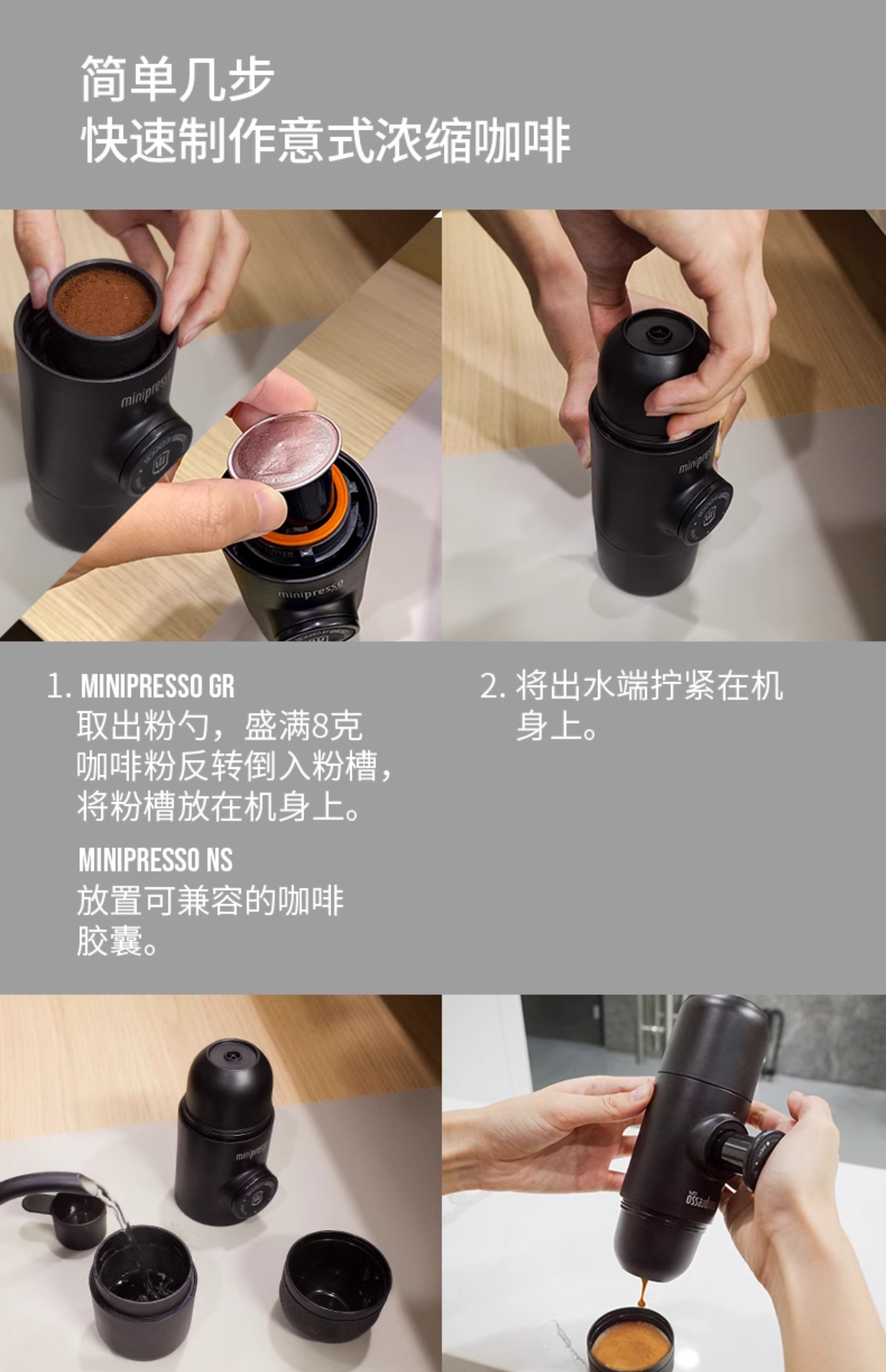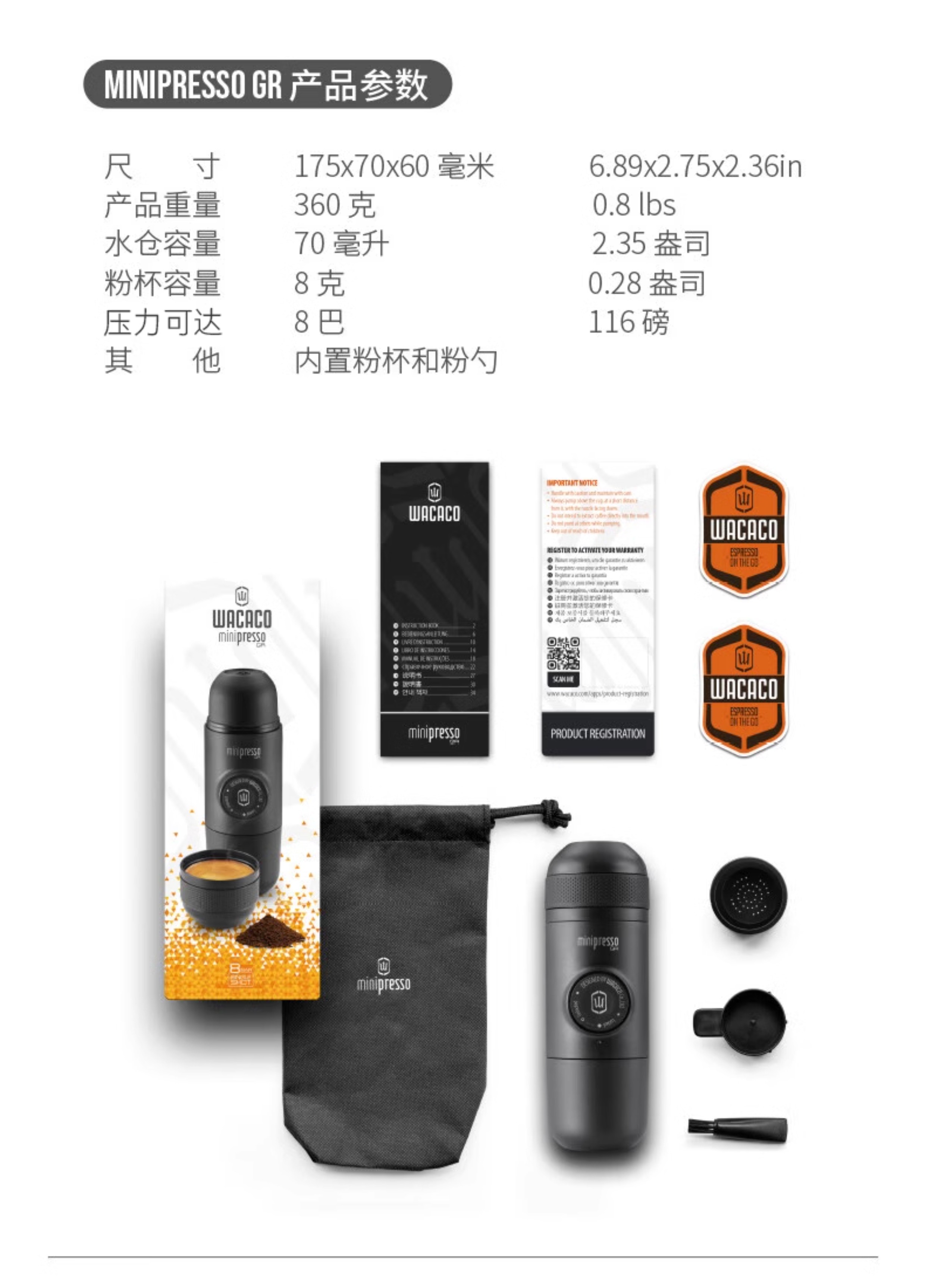 ♤ WACACO Minipresso 휴대용 커피 머신 핸드 프레스 수동 에스프레소 야외 캡슐 커피스토어 가기