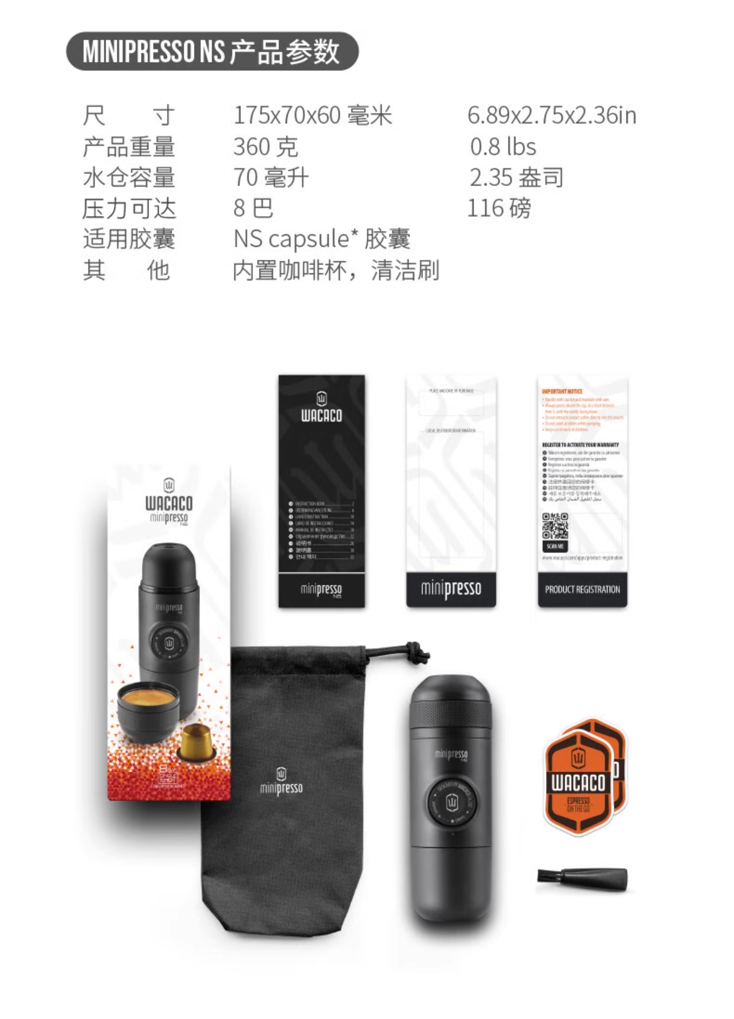 ♤ WACACO Minipresso 휴대용 커피 머신 핸드 프레스 수동 에스프레소 야외 캡슐 커피