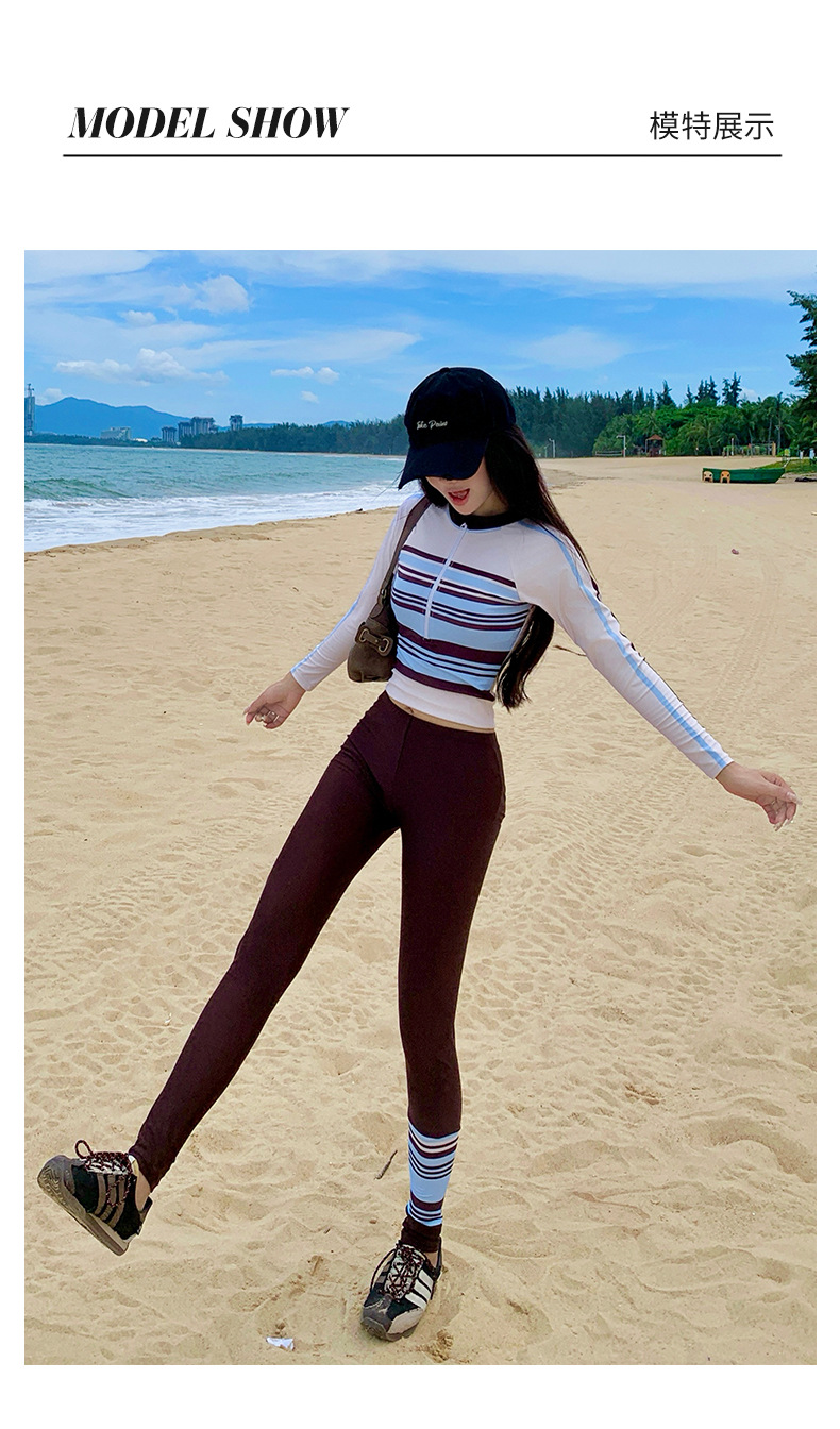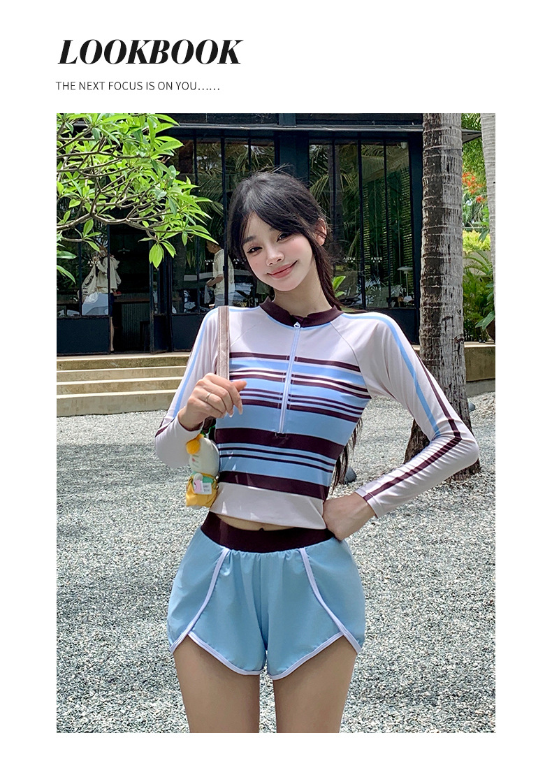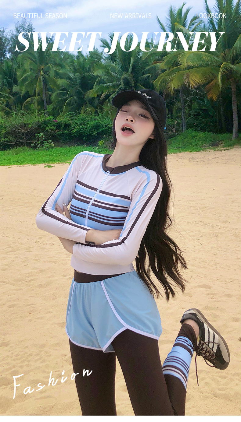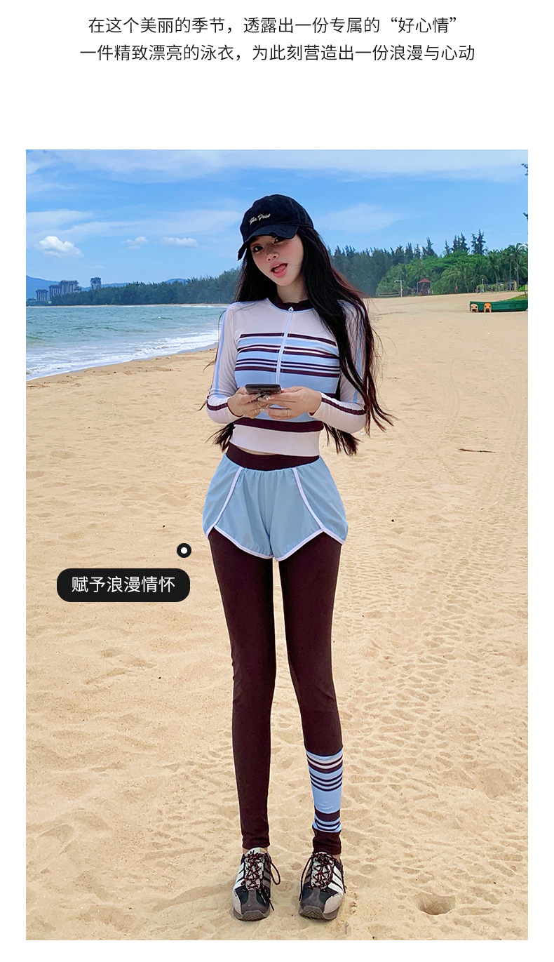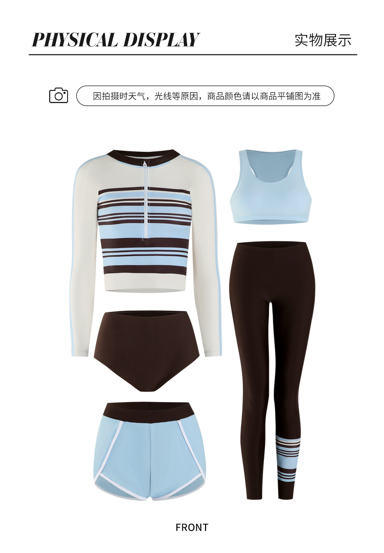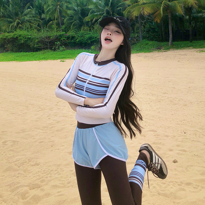 여성용 수영복 2025 새로운 스타일 귀여운 소녀 자외선 차단 긴팔 바지 5 피스 세트 여성용 보수적 인 서핑 및 스노클링 잠수복
