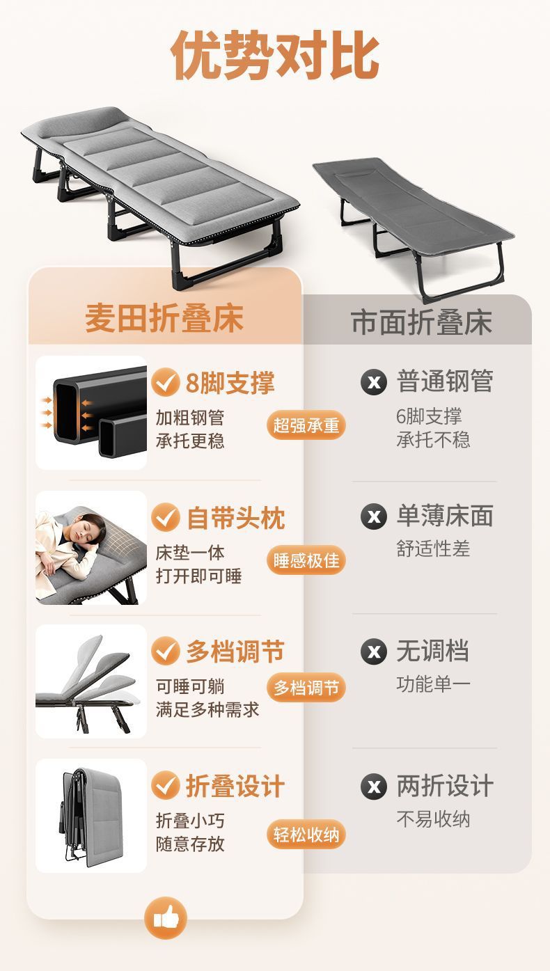 야외 싱글 침대를 위한 점심 시간 접이식 침대, 간단하고 휴대 가능한 사무실 낮잠 캠프 침대, 다기능 안락 의자, 동반 침대스토어 가기