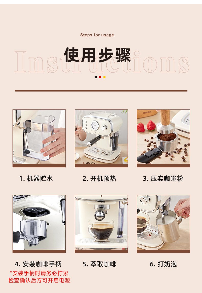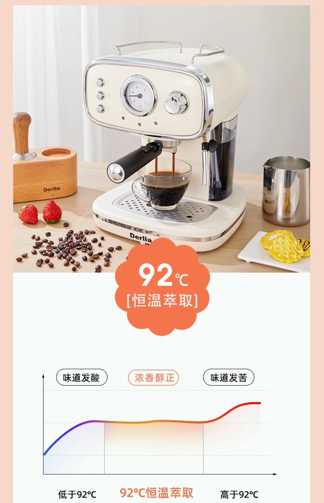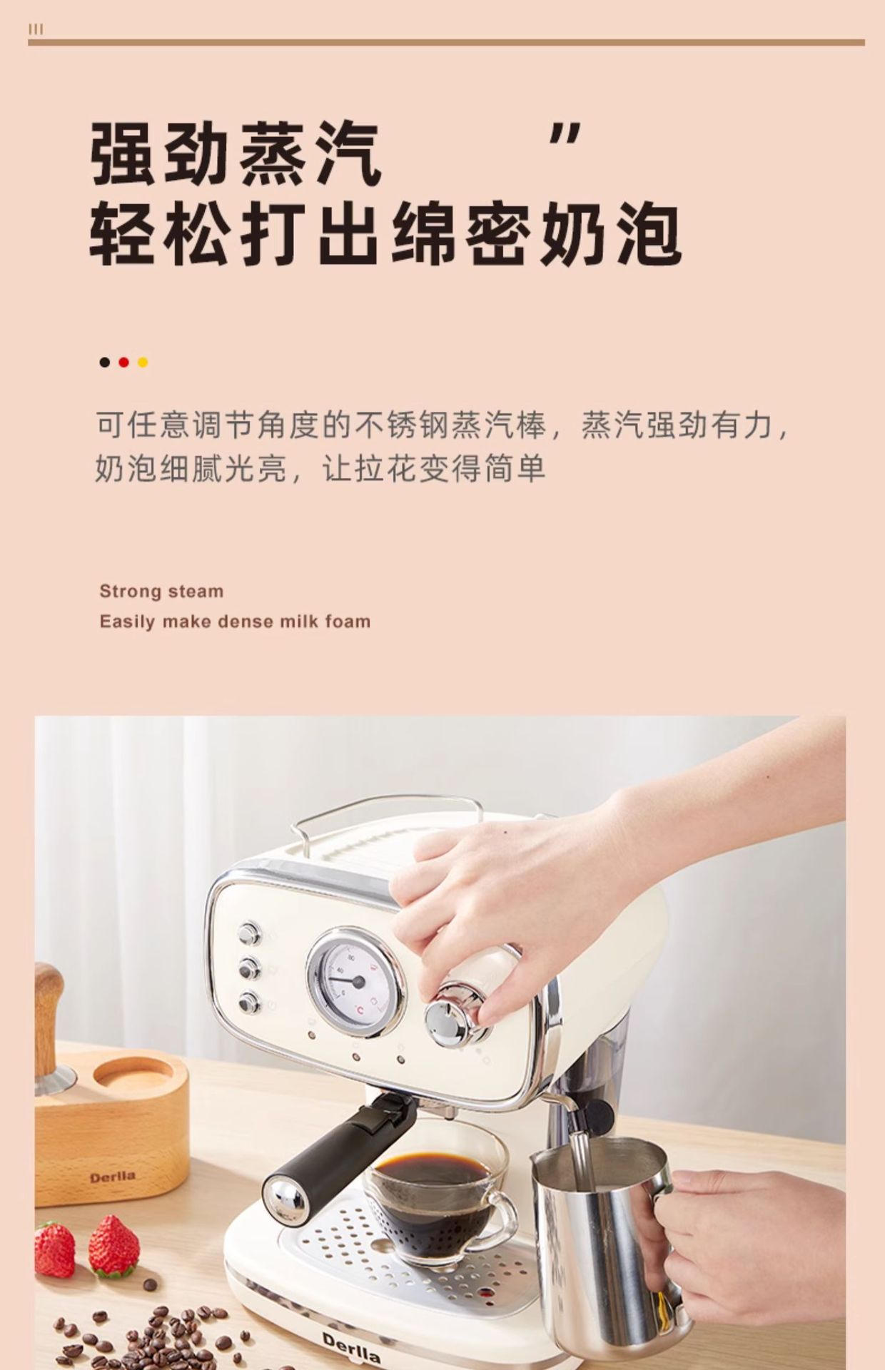 무료 배송 독일 Derlla 완전 반자동 에스프레소 머신 가정용 소형 우유 거품기 올인원 레트로