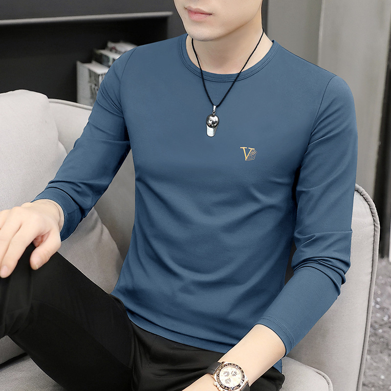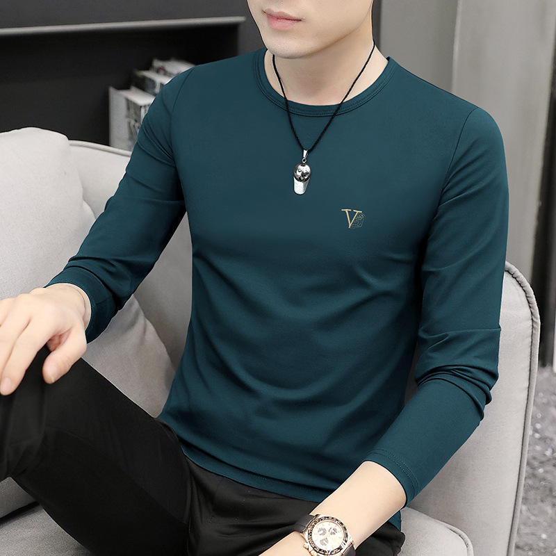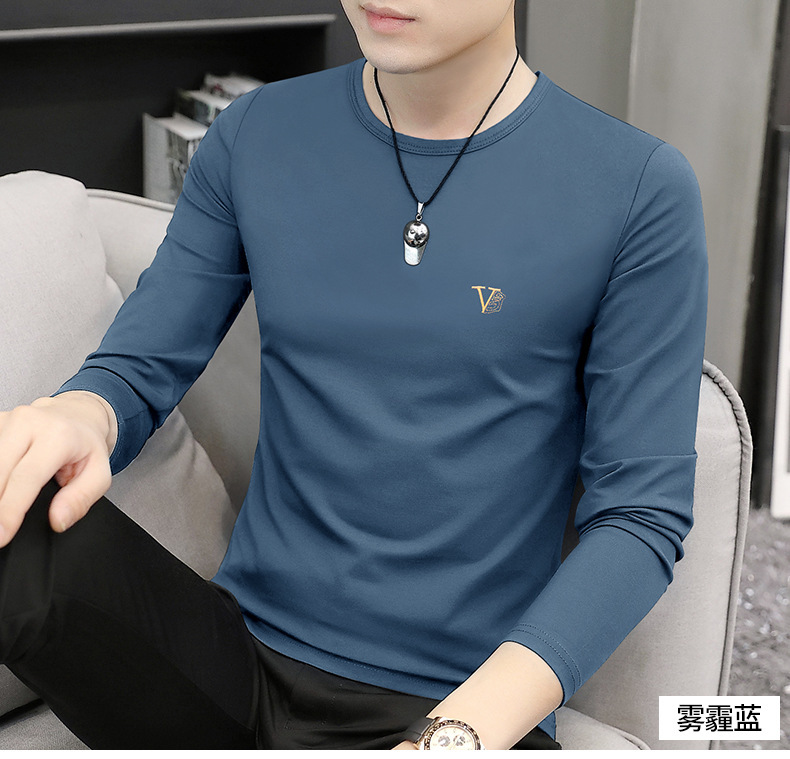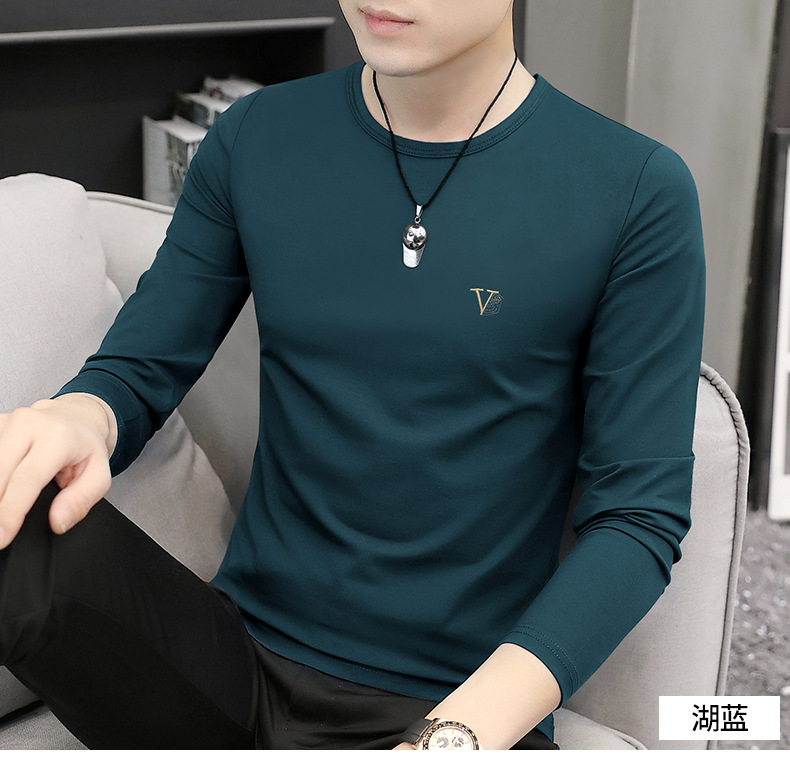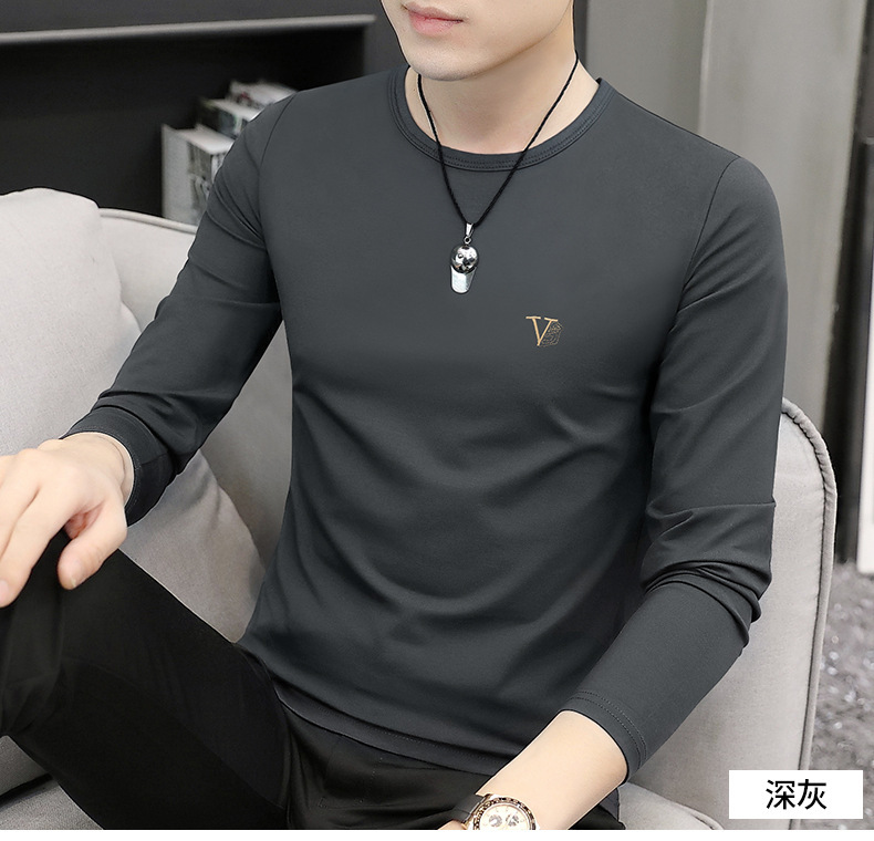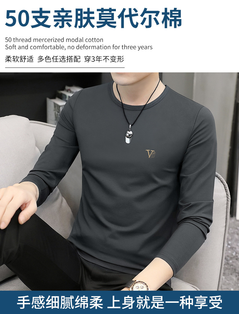 2025 모달 긴팔 티셔츠 남성용 라운드 넥 가을 코트 기성품 셔츠 이너 레이어 봄, 가을 탑 남성 트렌드