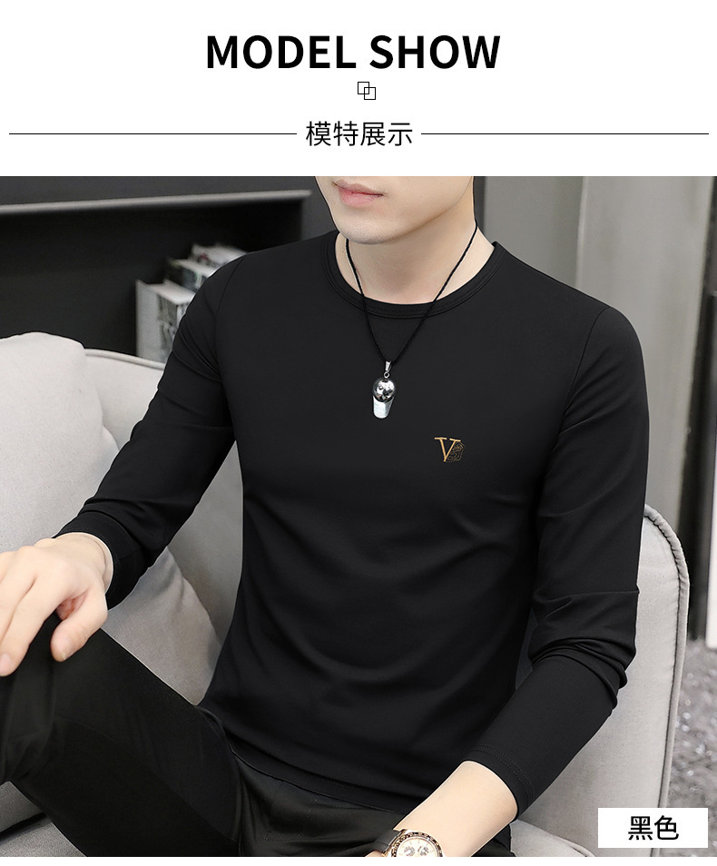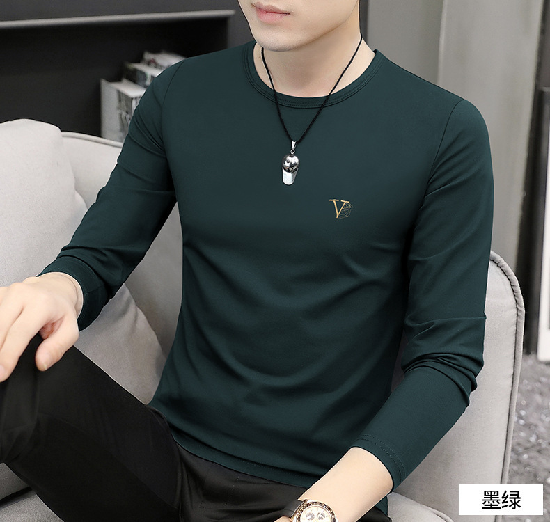 2025 모달 긴팔 티셔츠 남성용 라운드 넥 가을 코트 기성품 셔츠 이너 레이어 봄, 가을 탑 남성 트렌드스토어 가기