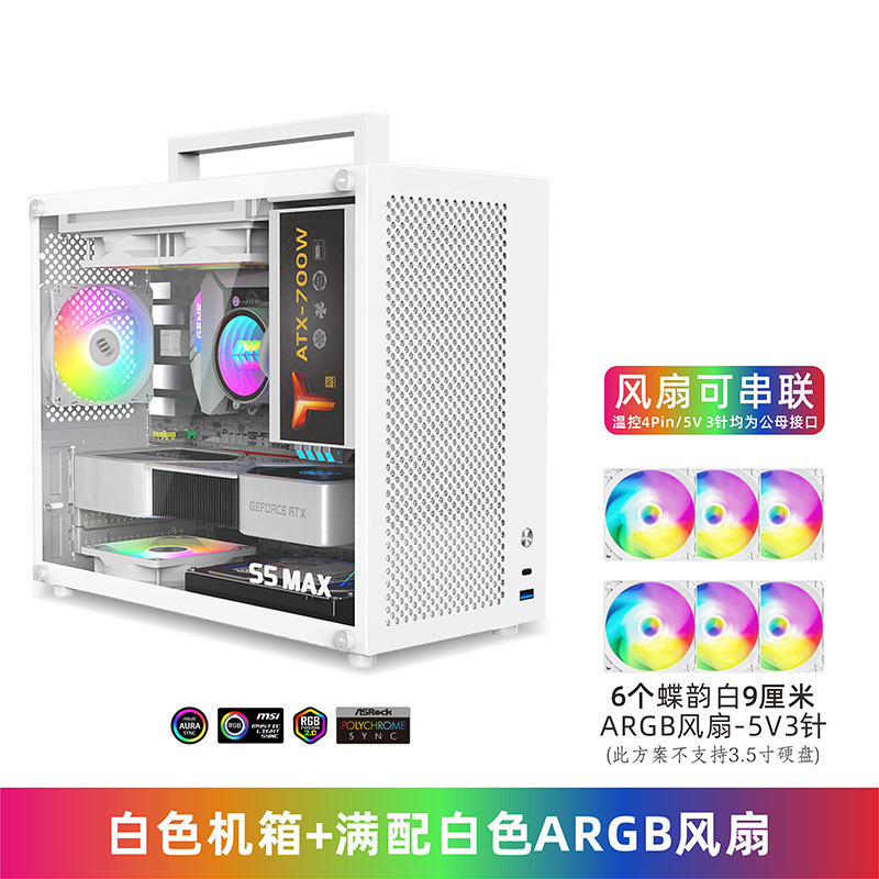 고급스러운 흰색 미니 핸들 데스크탑 컴퓨터 소형 섀시 마더보드 측면 투명 메인 섀시 드롭 배송 및 무료 배송