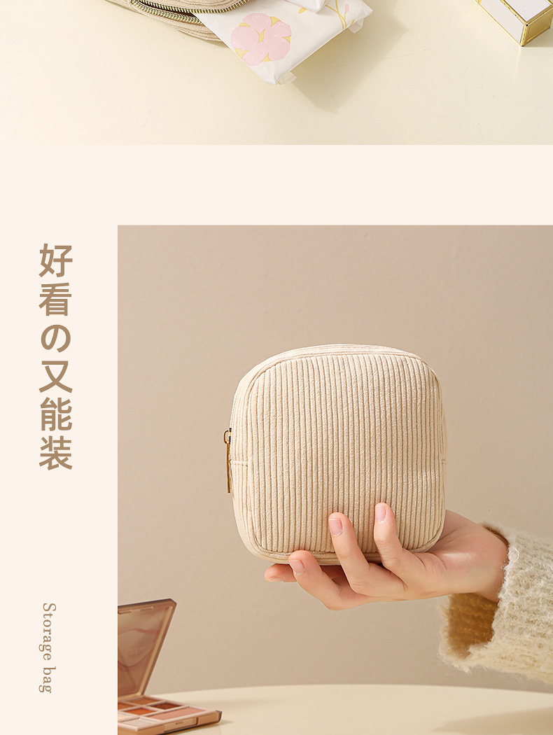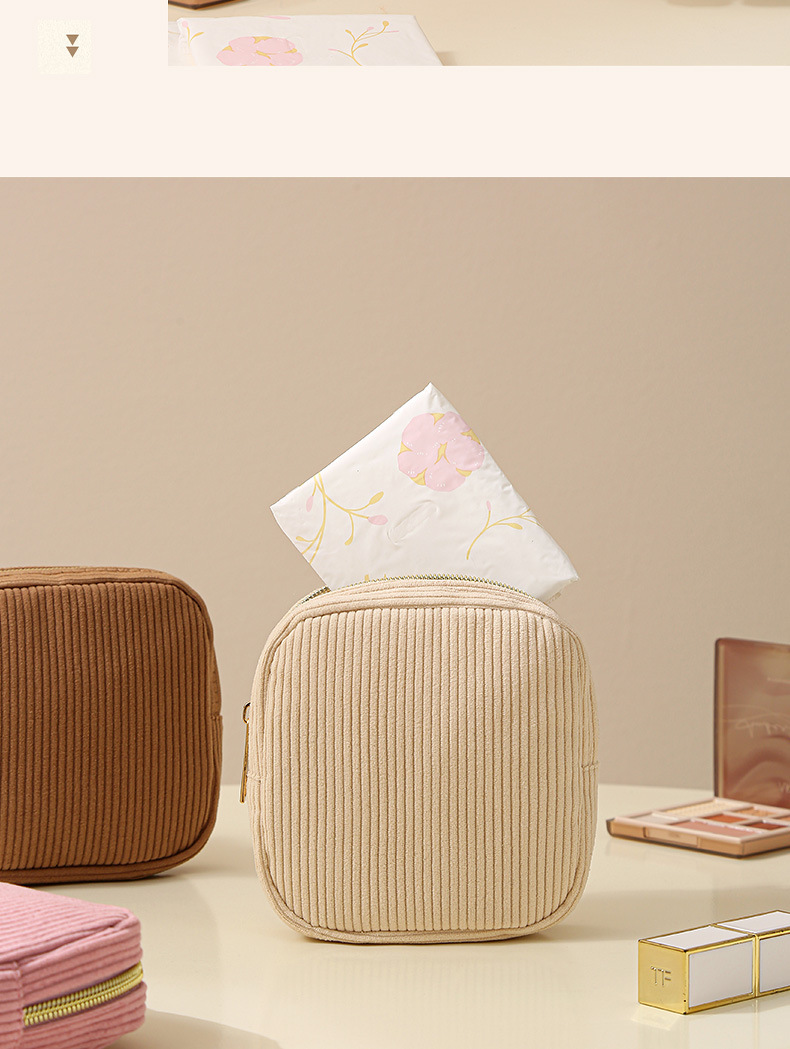 코듀로이 수납가방, 두꺼워진 휴대용 생리대 수납가방, 립스틱 잡화 수납가방