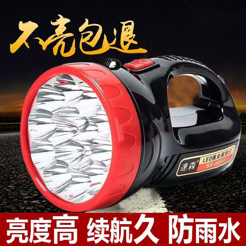 휴대용 탐조등 LED 강한 빛 충전식 장거리 슈퍼 밝은 야외 홈 순찰 대형 손전등 비상 낚시스토어 가기