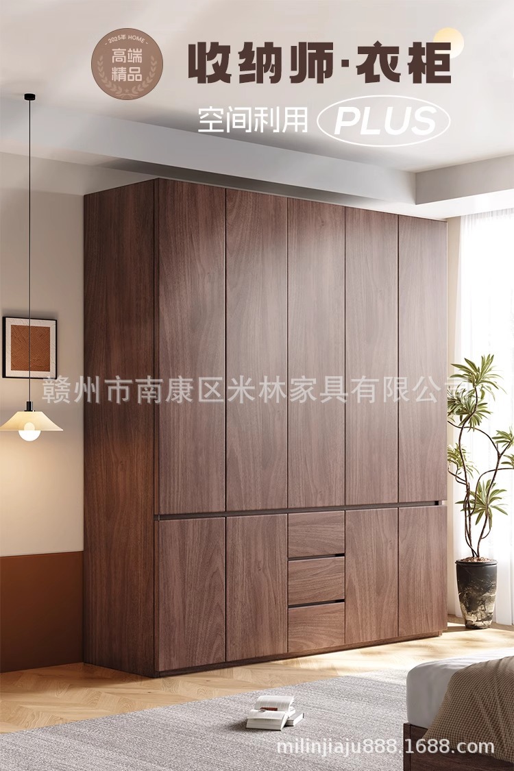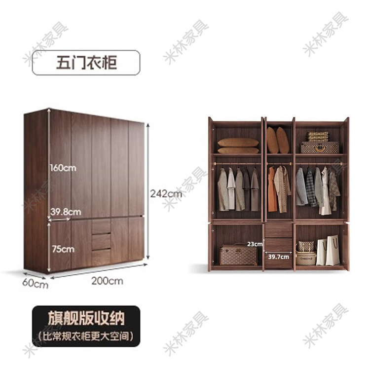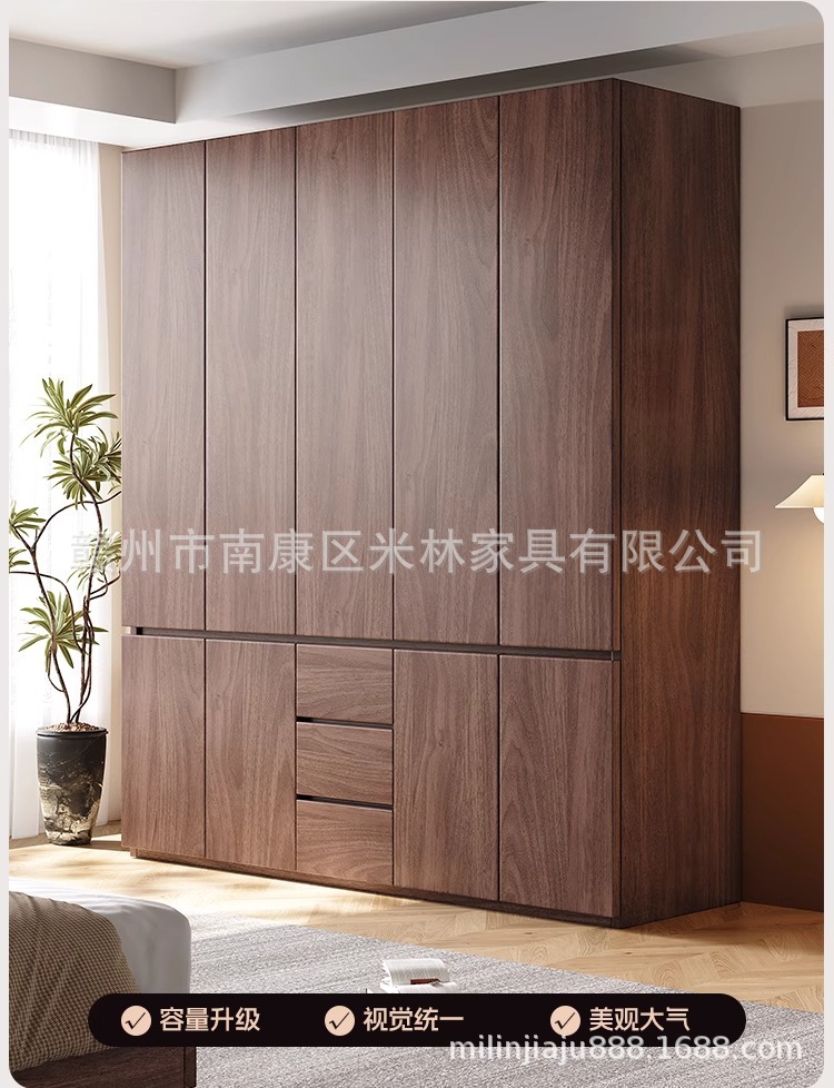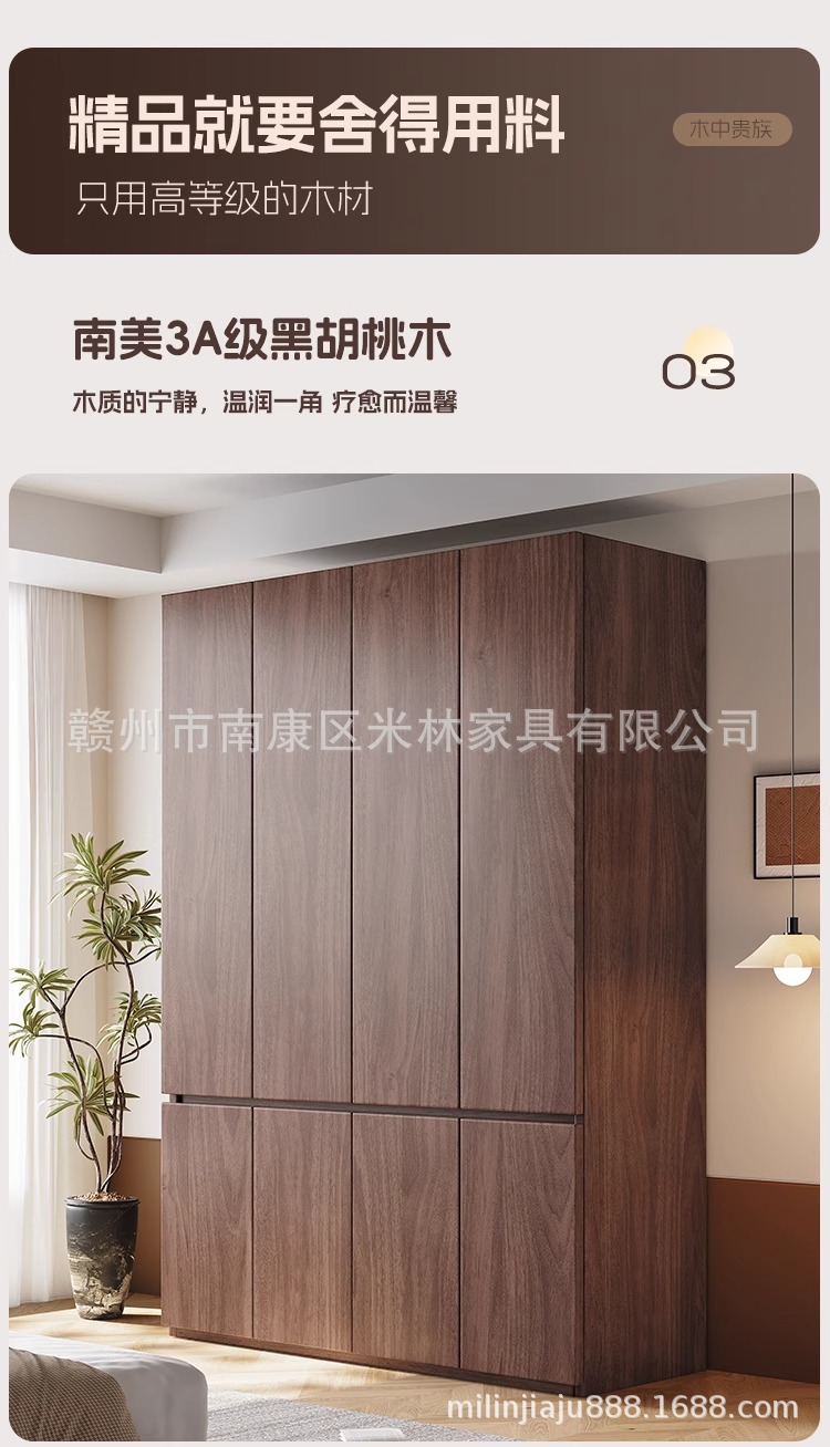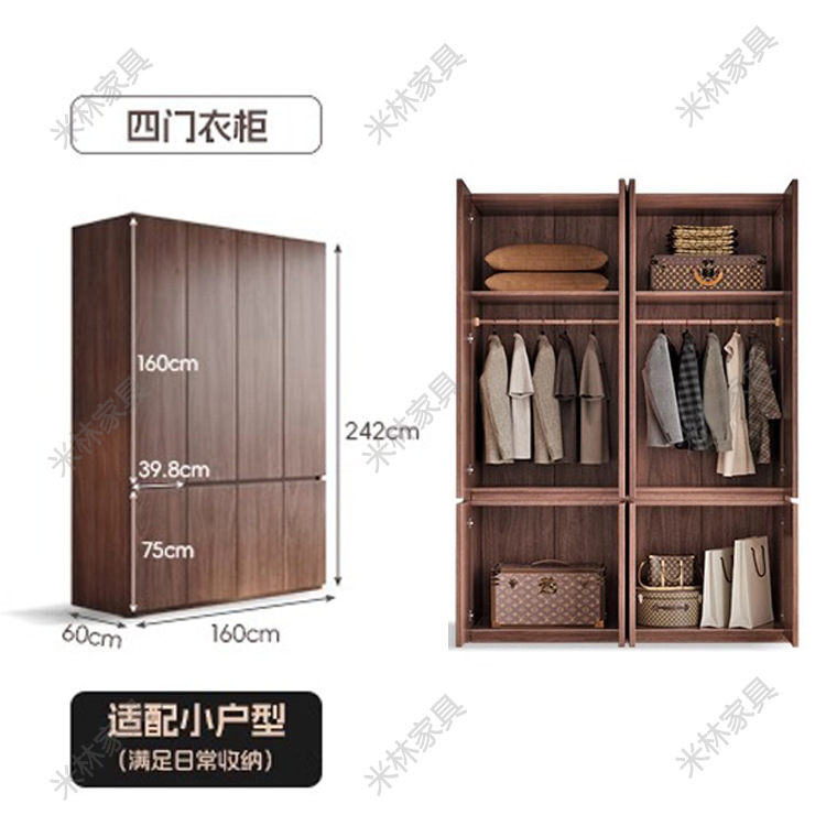 블랙 호두 원목 옷장 홈 모던 초대형 수납 캐비닛 심플 양문 옷장 원 도어 투 탑