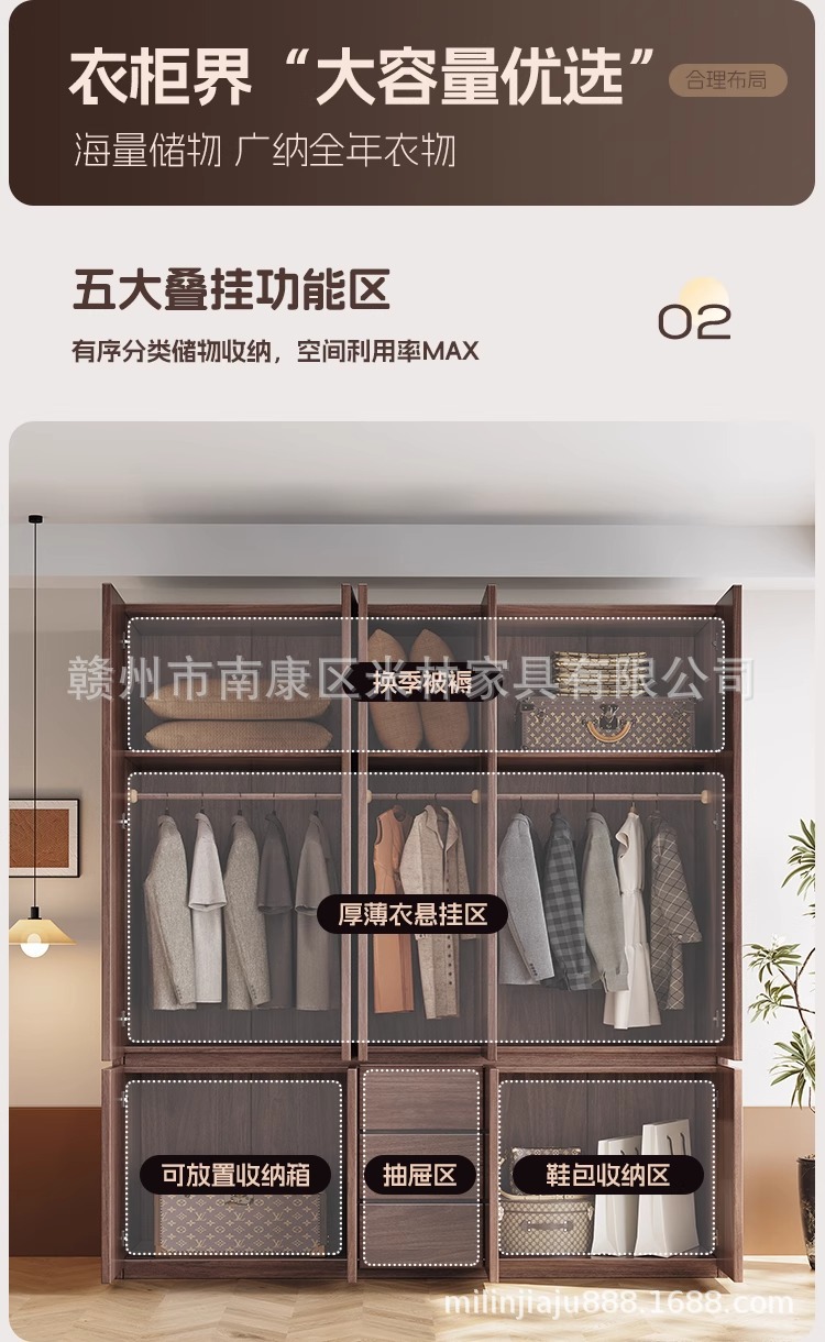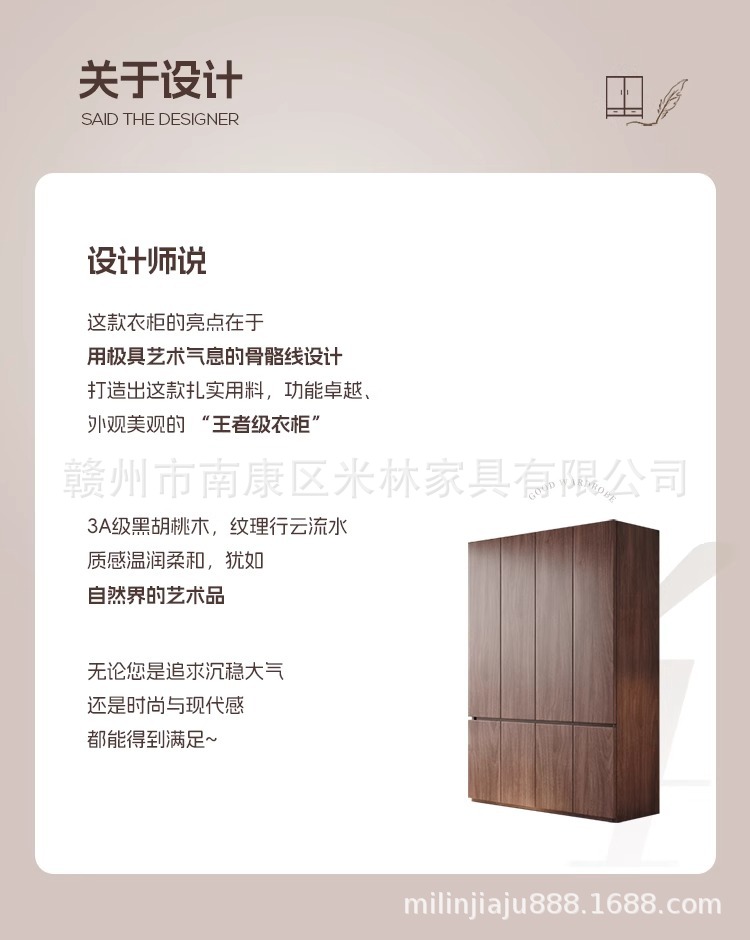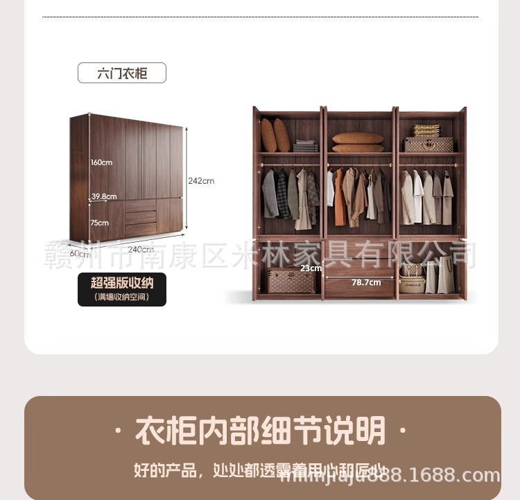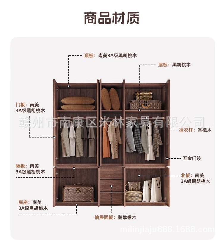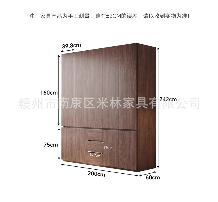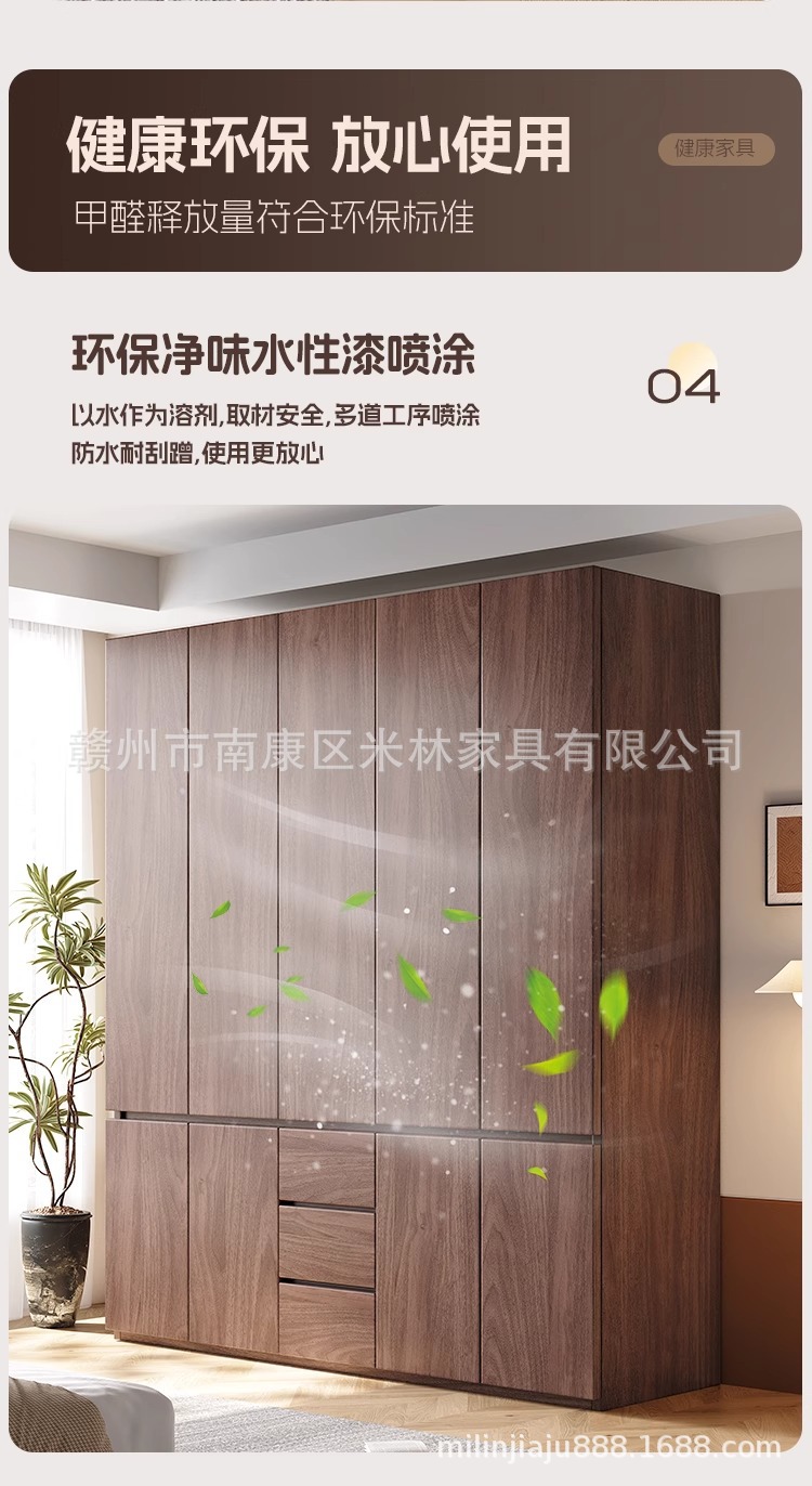 블랙 호두 원목 옷장 홈 모던 초대형 수납 캐비닛 심플 양문 옷장 원 도어 투 탑
