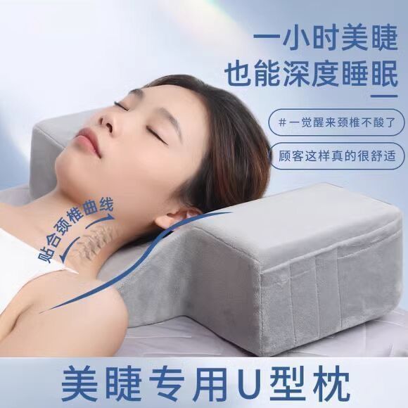 속눈썹 U자형 베개 작업대 탈부착 및 세탁 가능한 미용 침대 베개 목 보호 속눈썹 미용 침대 베개 벨벳 패턴 자수 U자형 베개스토어 가기