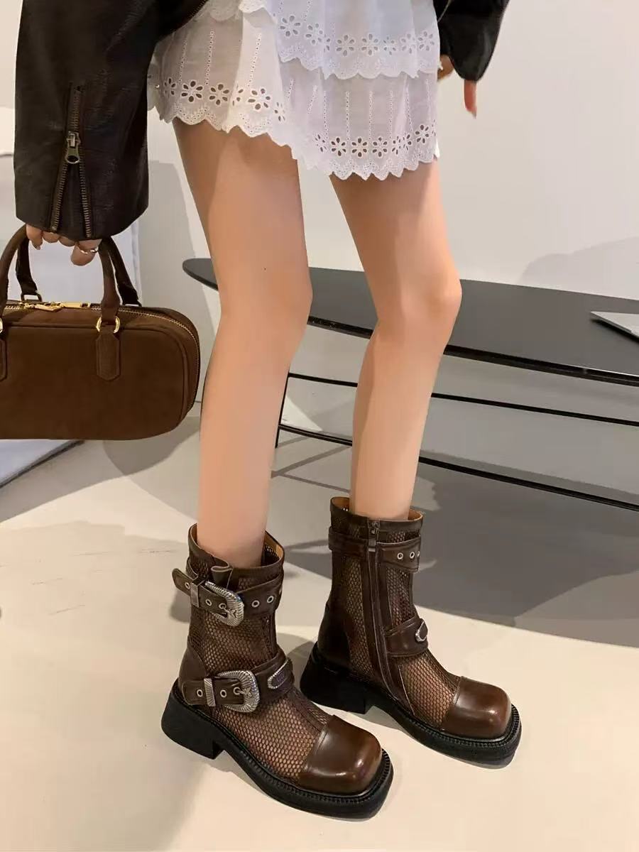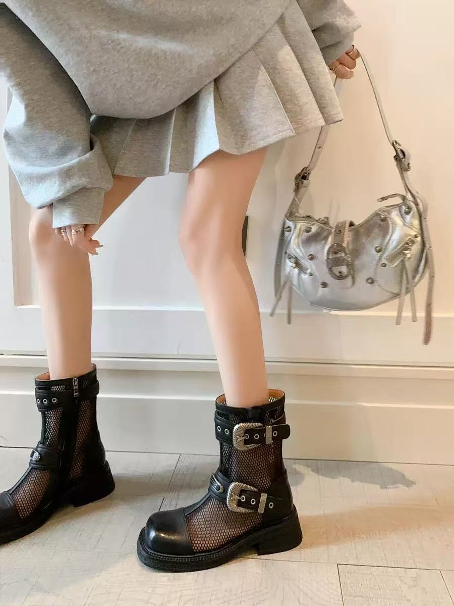 영국식 메쉬 벨트 버클 통기성 복고풍 다용도 마틴 부츠 여성 여름 중공 두꺼운 굽 두꺼운 밑창 짧은 샌들스토어 가기