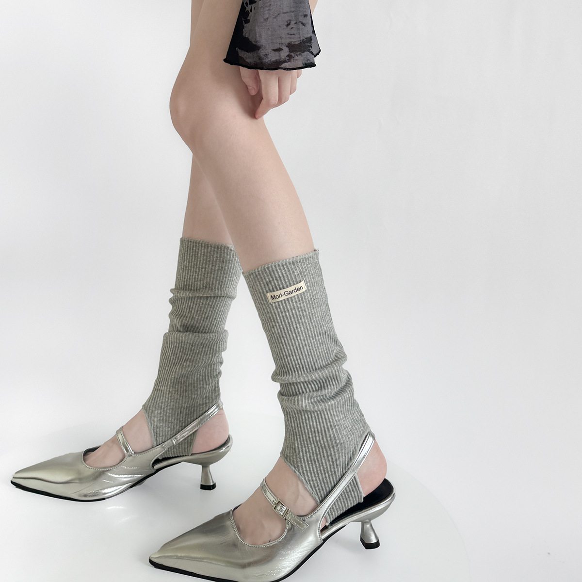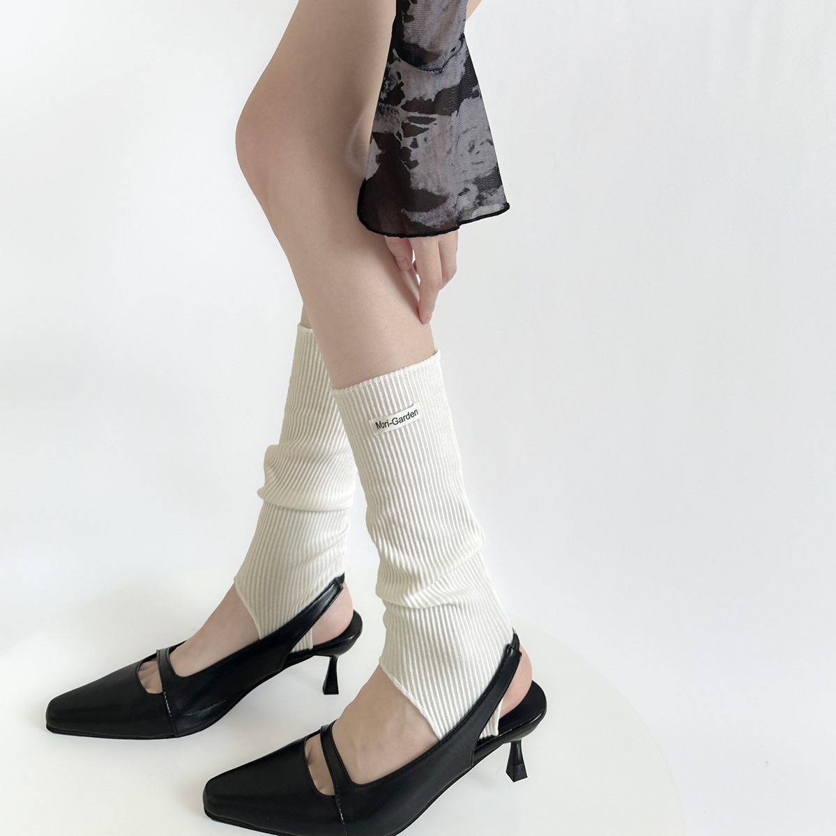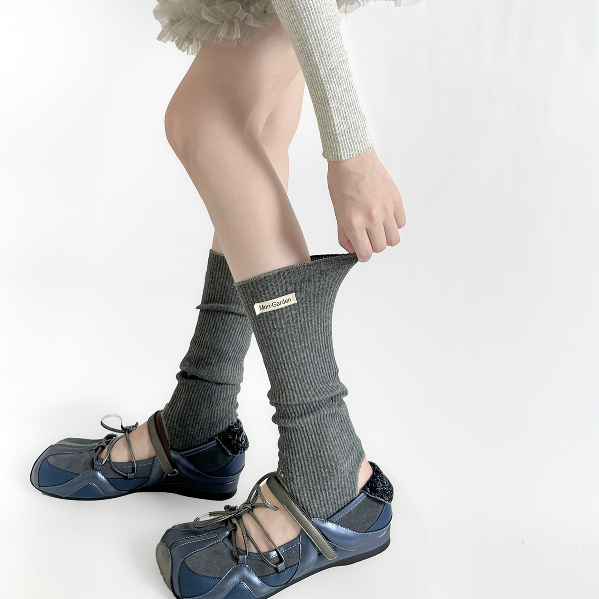 한국식 인스 레터 천 라벨 심플 세로 스트라이프 발목 양말 미우 스타일 짧은 종아리 양말 종아리 중간 양말