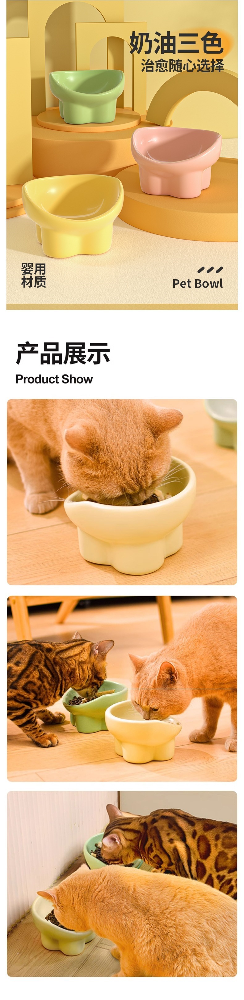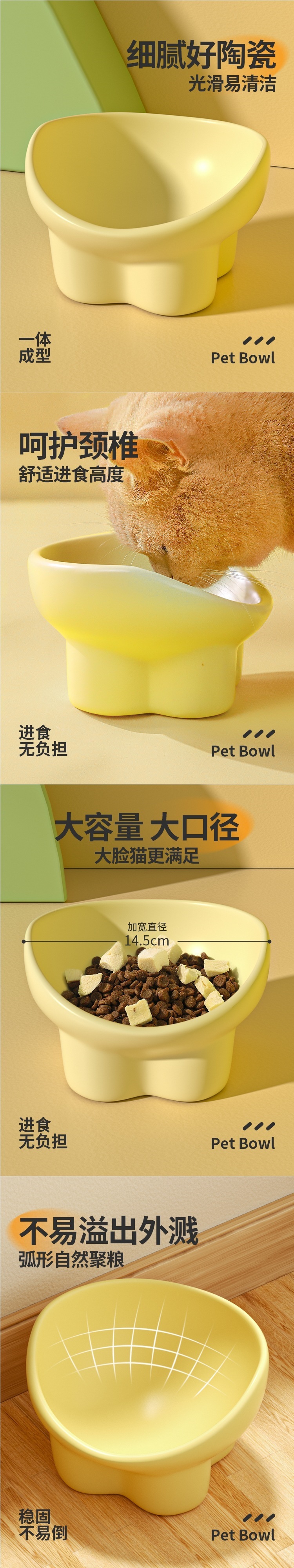 고양이 그릇, 세라믹 고양이 사료 그릇, 개 그릇, 고양이 밥 그릇, 대구경 물 그릇, 경사진 입 그릇, 뒤집힘 방지 애완 동물 용품