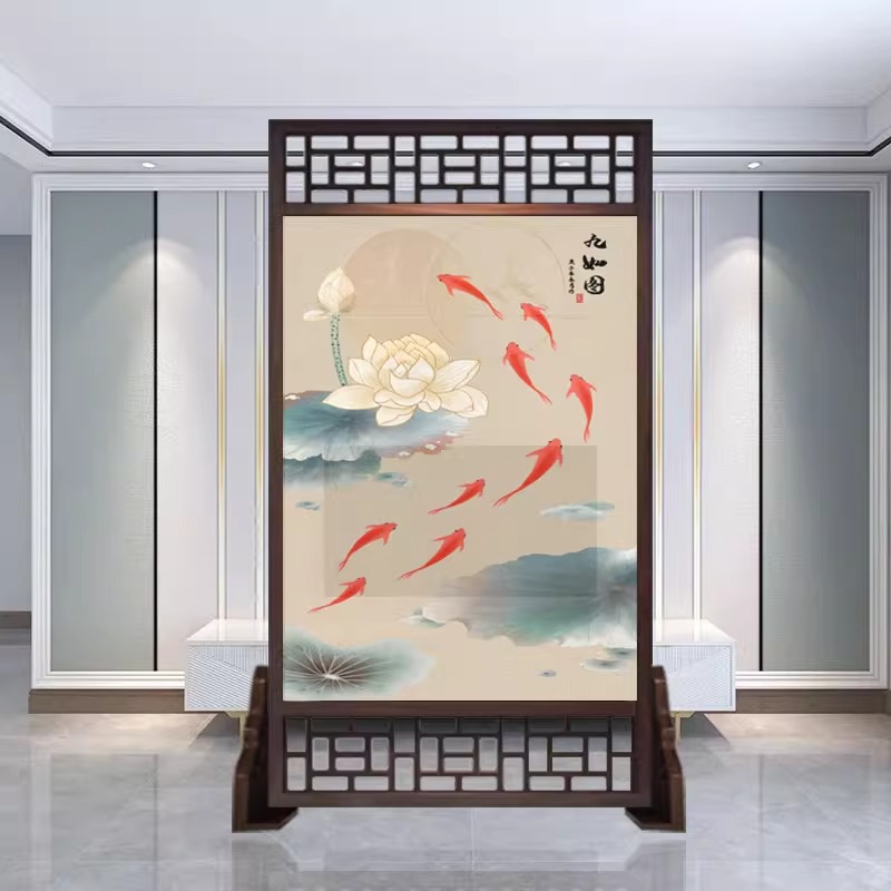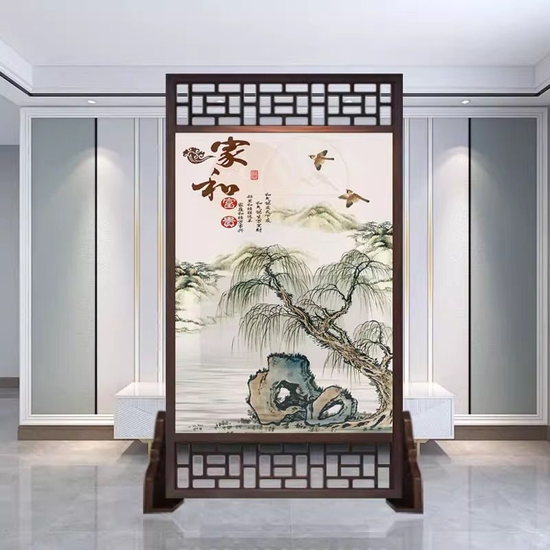 새로운 중국 스타일의 현대적인 간단한 단단한 나무 스크린 파티션 거실 입구 현관 침실 차단 양면 좌석 스크린스토어 가기