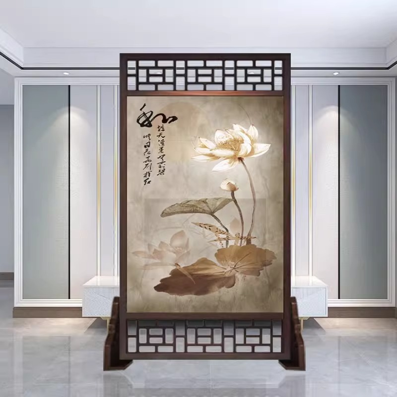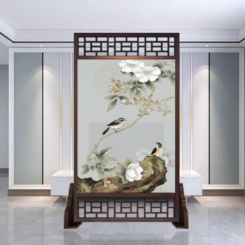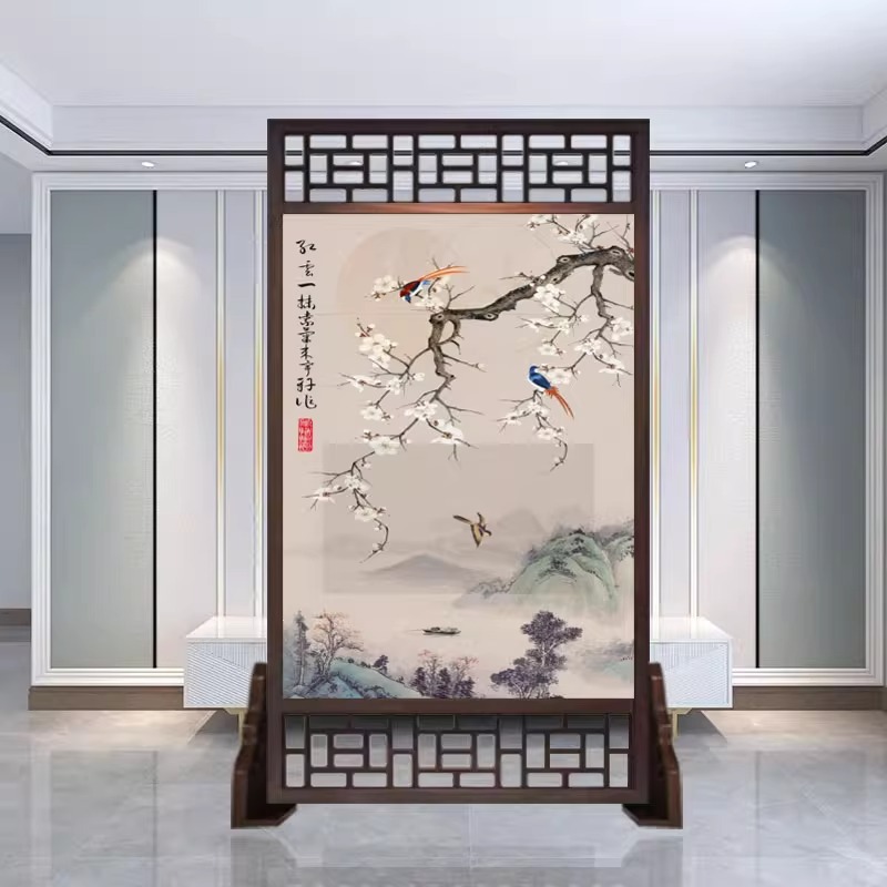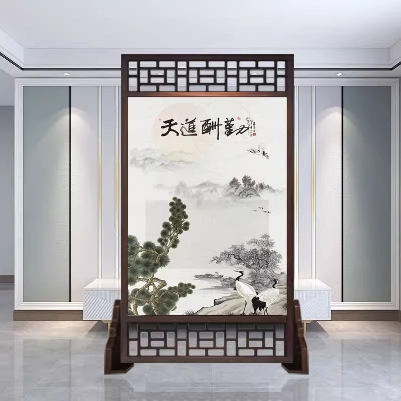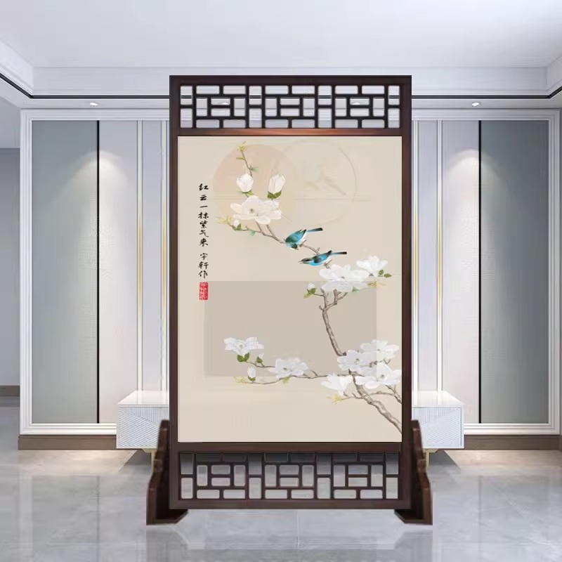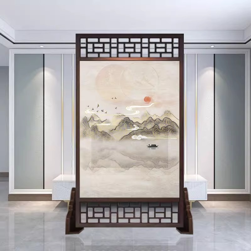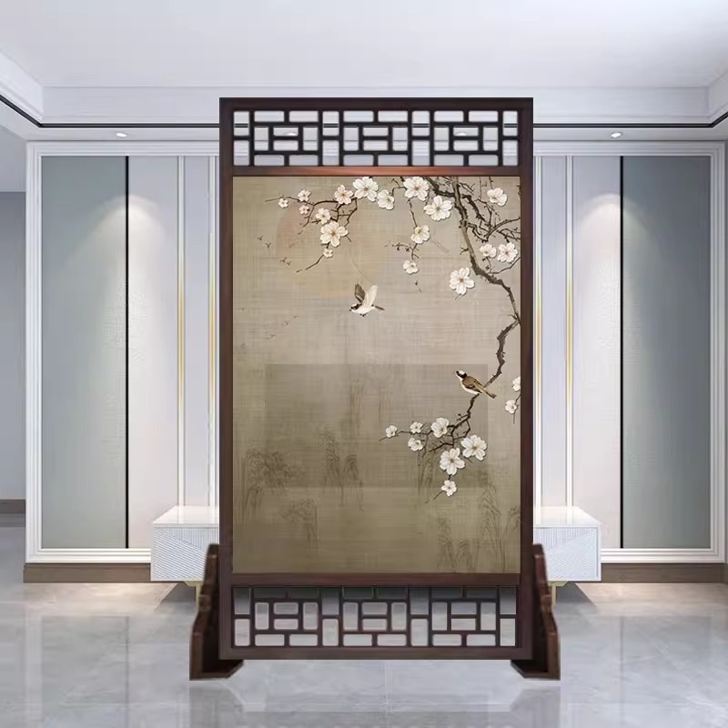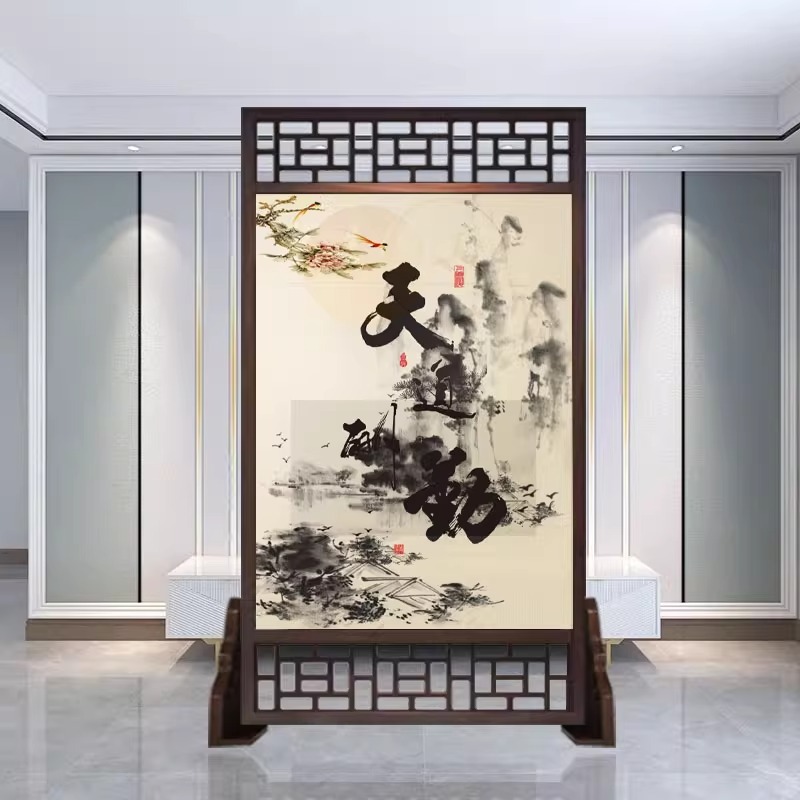 새로운 중국 스타일의 현대적인 간단한 단단한 나무 스크린 파티션 거실 입구 현관 침실 차단 양면 좌석 스크린