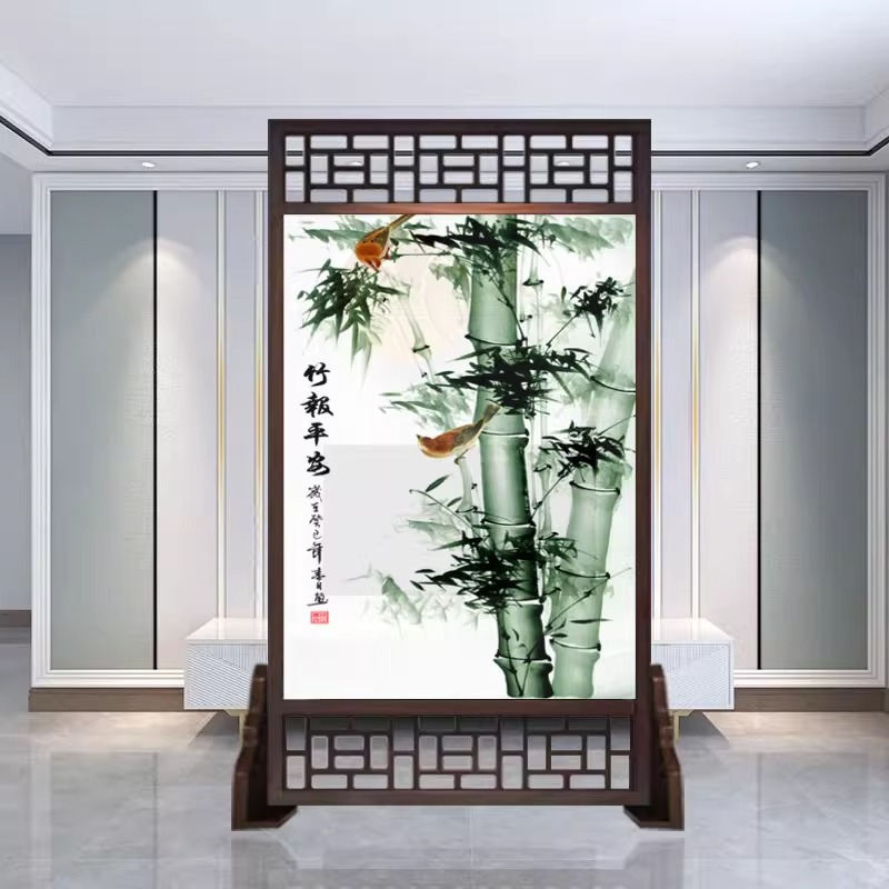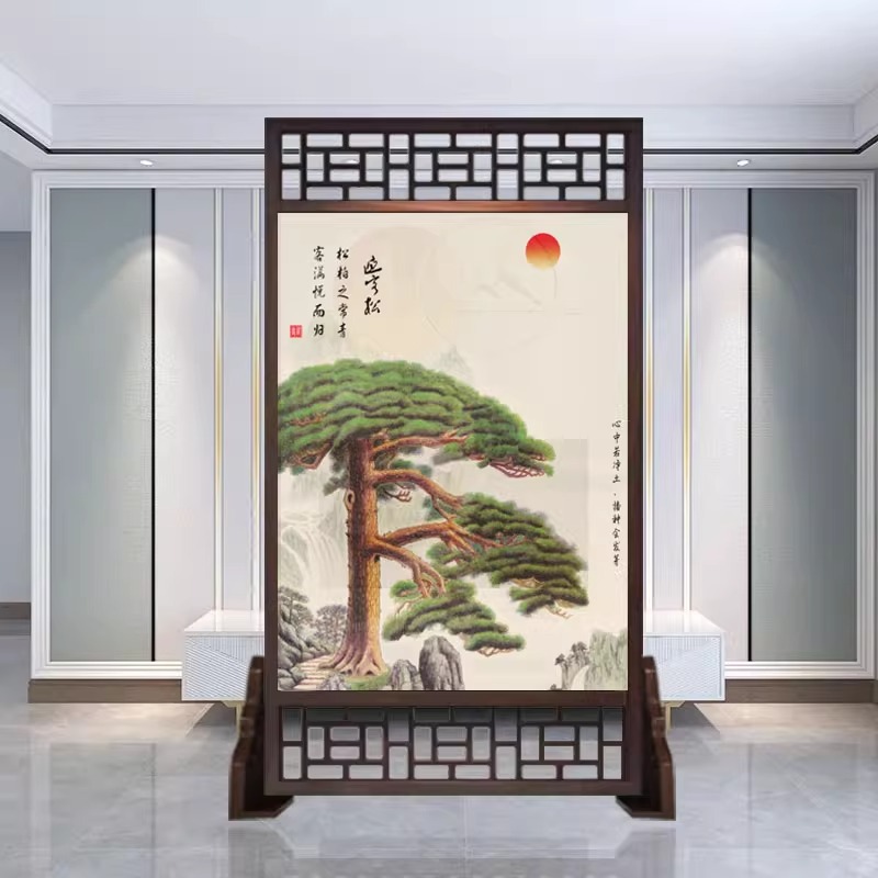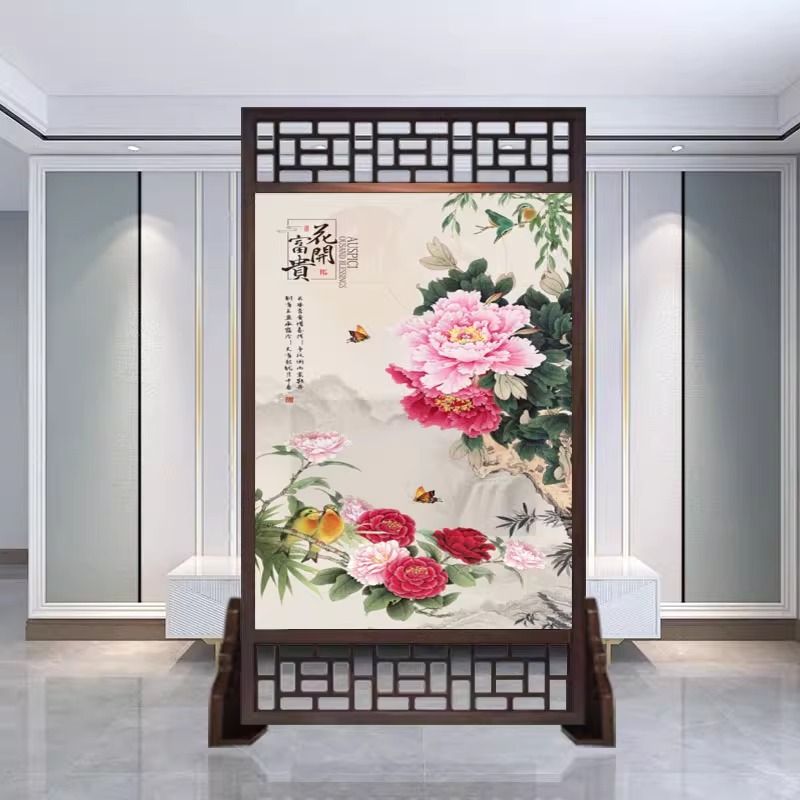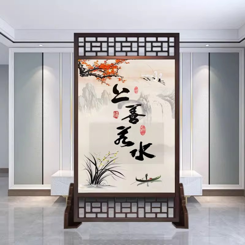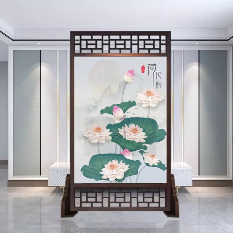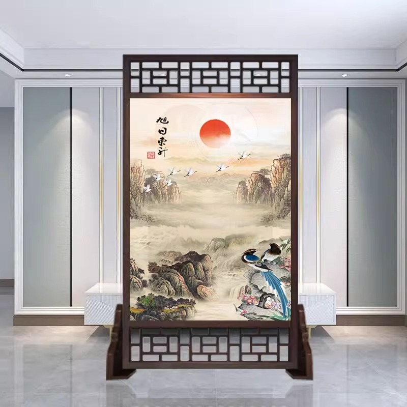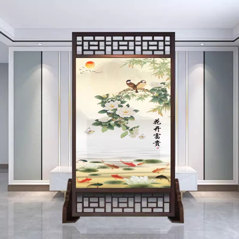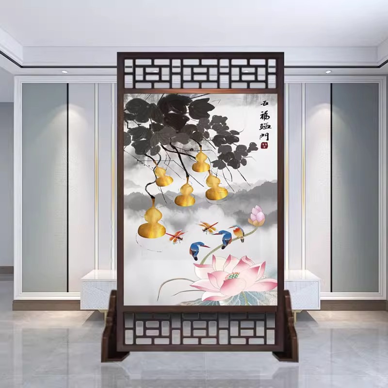 새로운 중국 스타일의 현대적인 간단한 단단한 나무 스크린 파티션 거실 입구 현관 침실 차단 양면 좌석 스크린