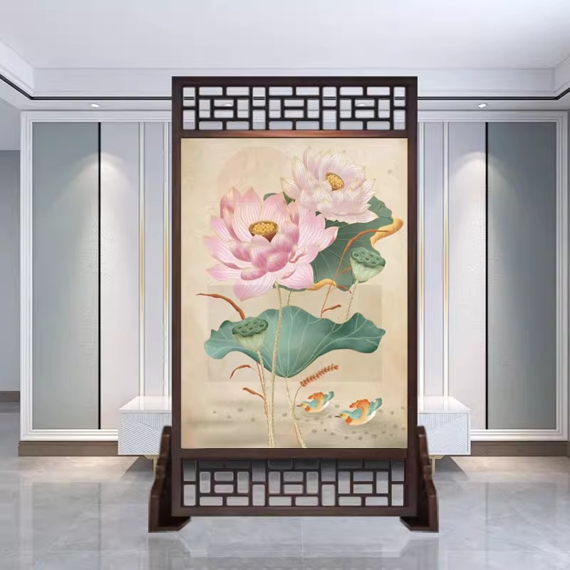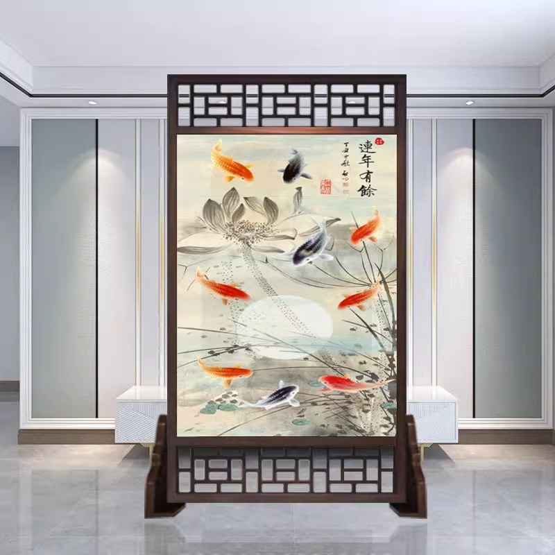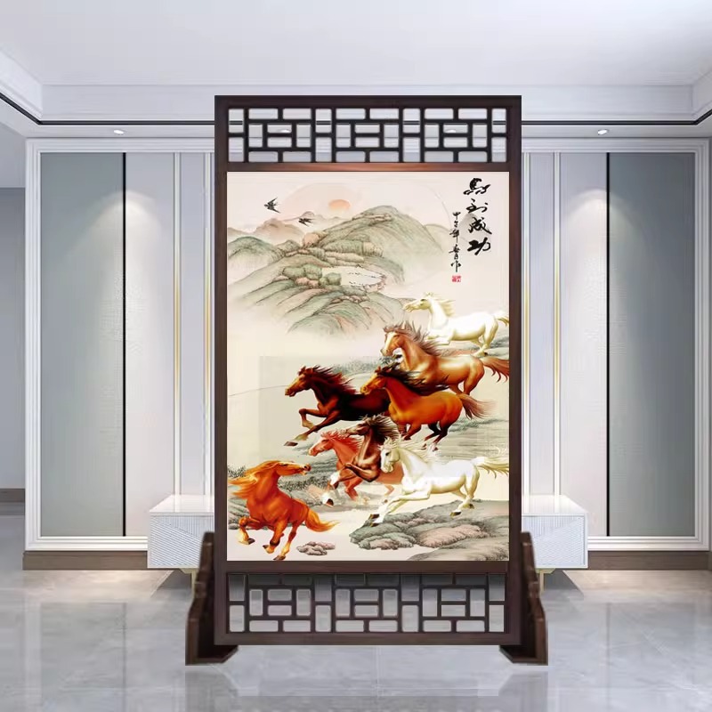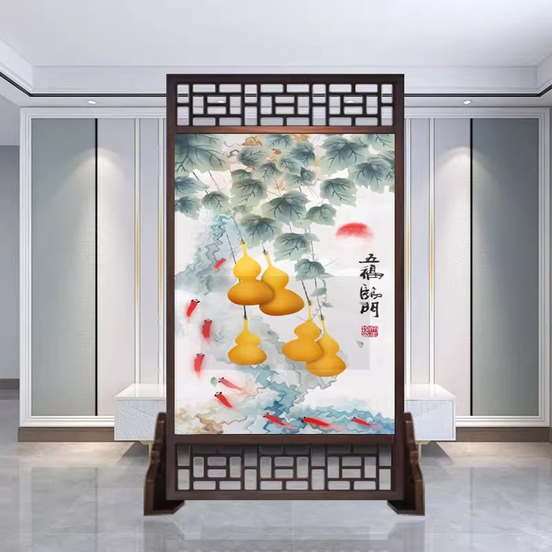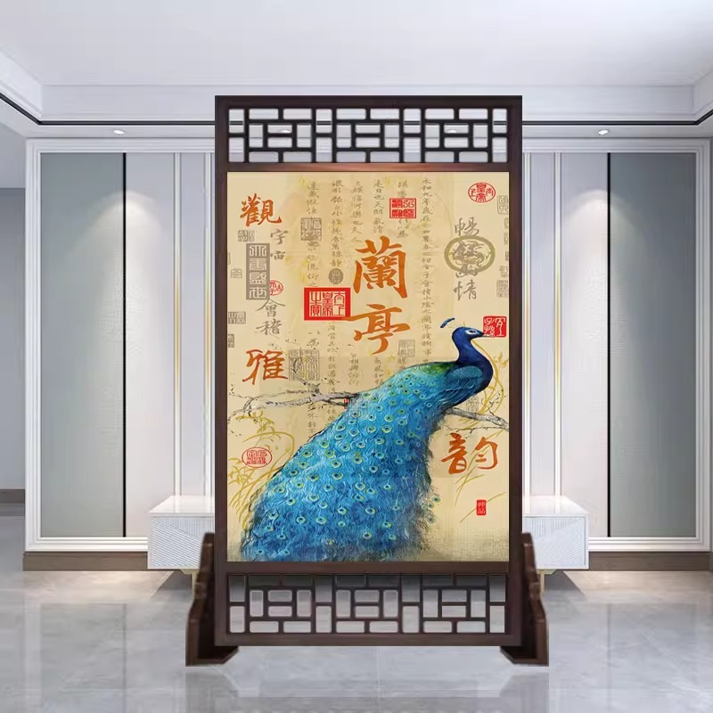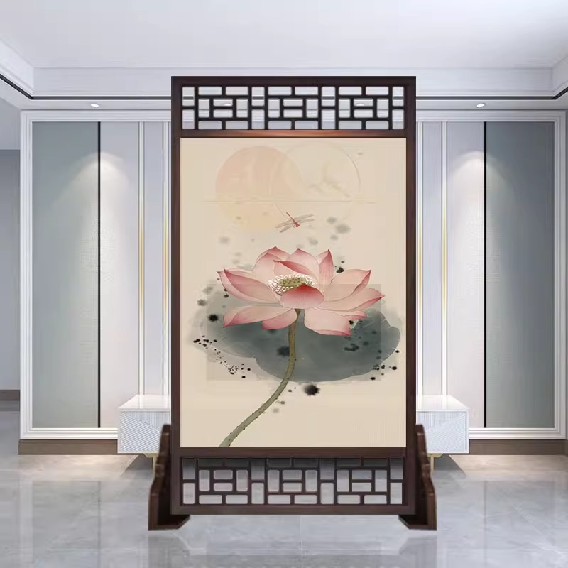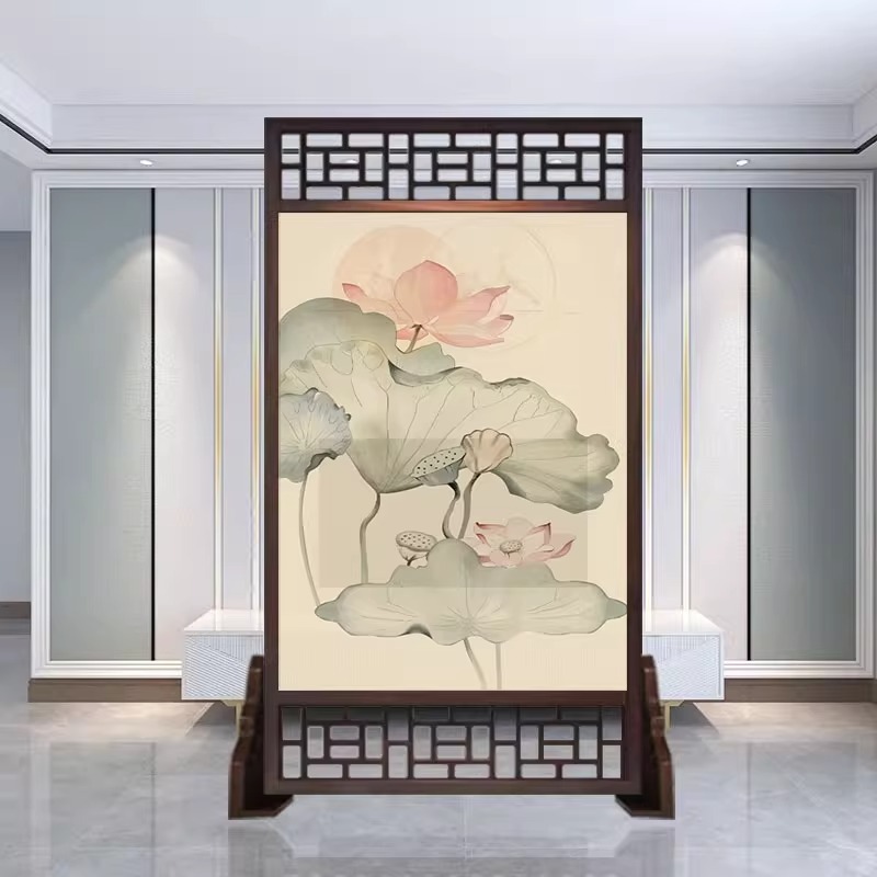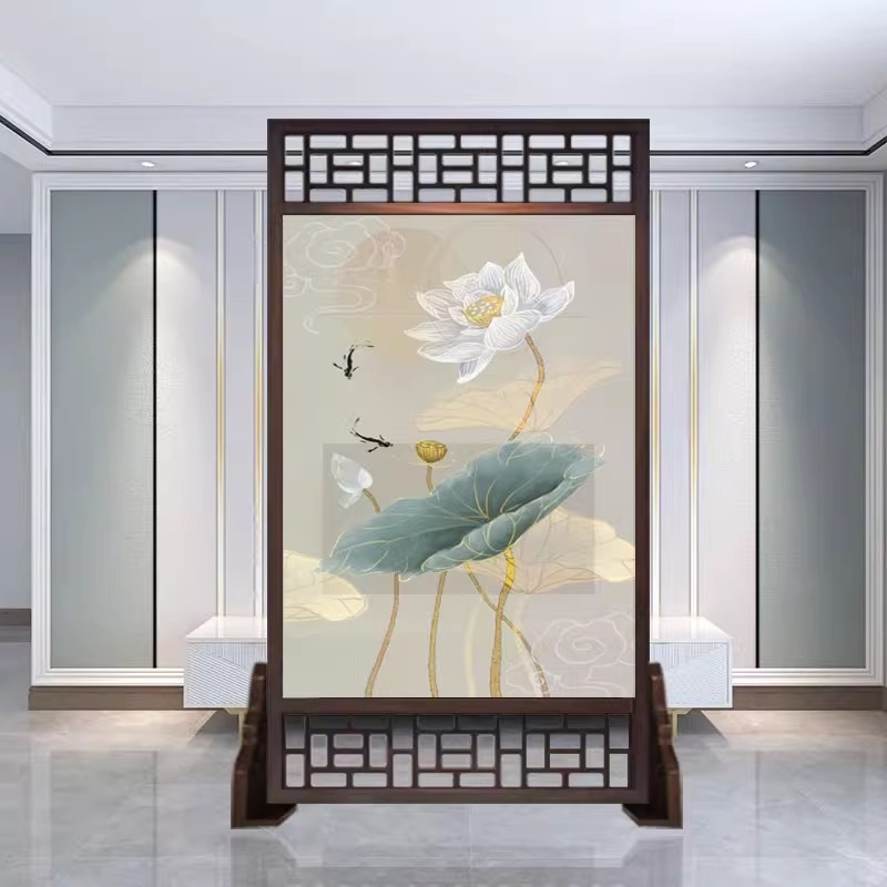 새로운 중국 스타일의 현대적인 간단한 단단한 나무 스크린 파티션 거실 입구 현관 침실 차단 양면 좌석 스크린