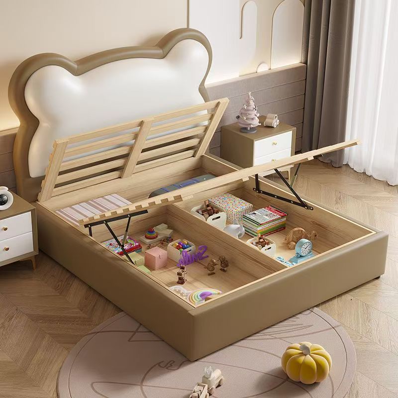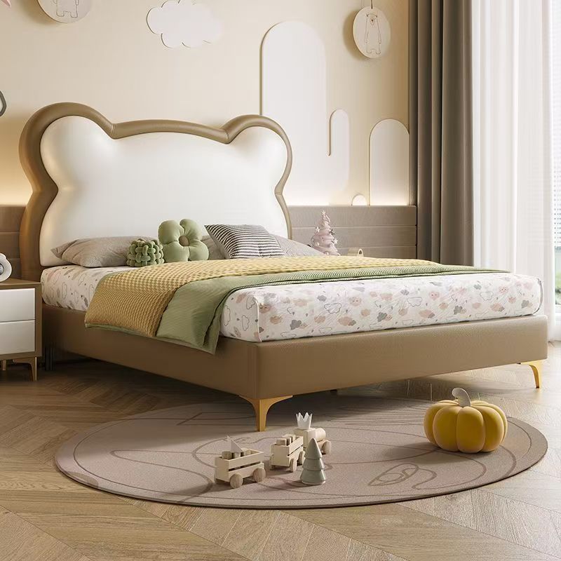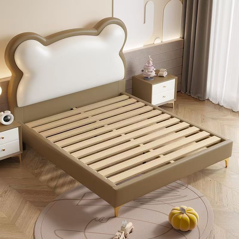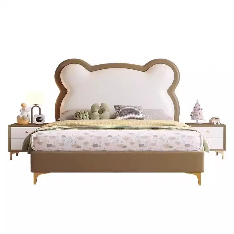 어린이 침대 현대 간단한 소년과 소녀 싱글 침대 1.5m 만화 가죽 침대 작은 아파트 곰 스타일 가죽 아트 침대