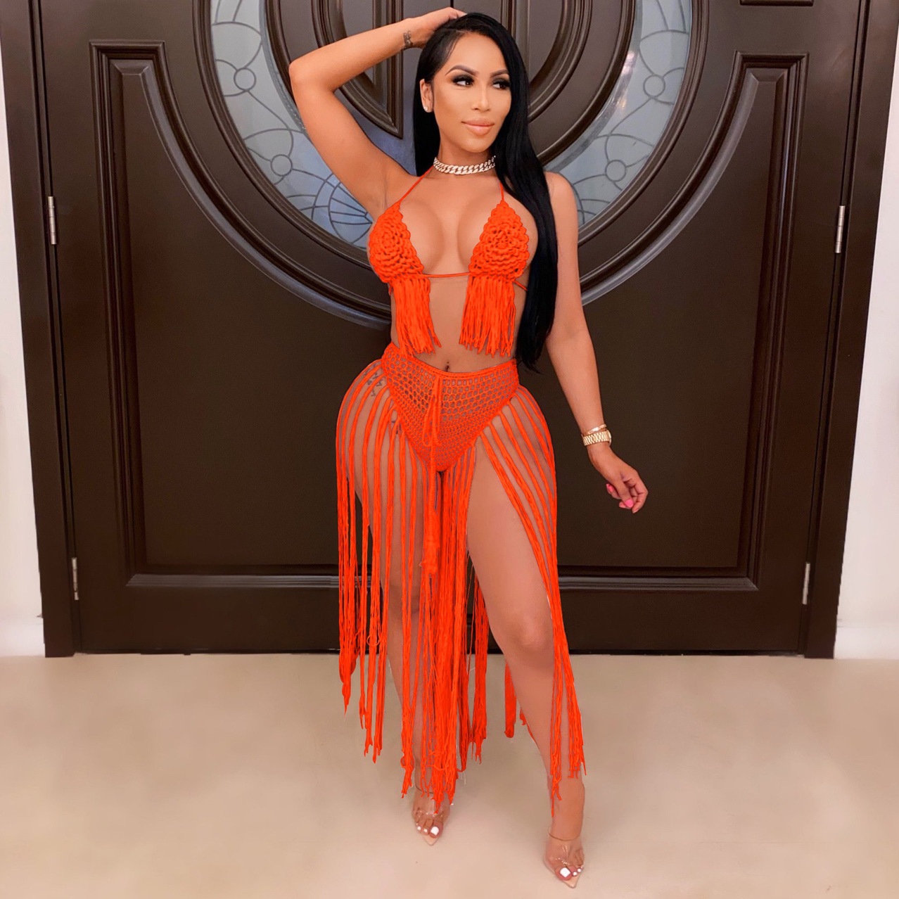 Amazon AliExpress 대외 무역 새로운 여성 의류 긴 유럽과 미국의 짠 투피스 태슬 비치 스커트 로즈 브라스토어 가기
