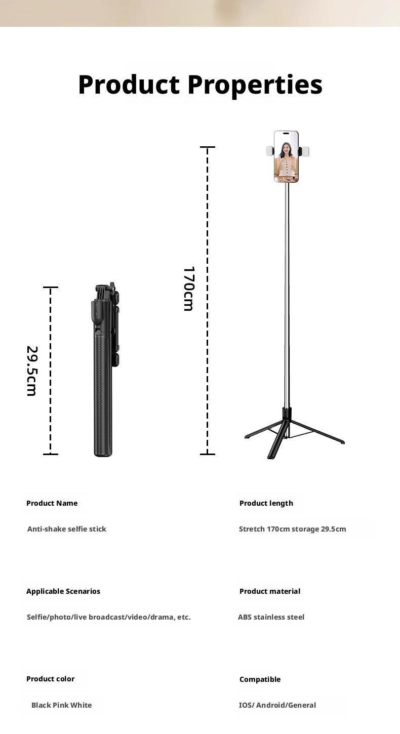 확장형 1.7m 셀카봉 삼각대 다기능 사진 유물 휴대폰 범용 360 ° 회전 스탠드 휴대용