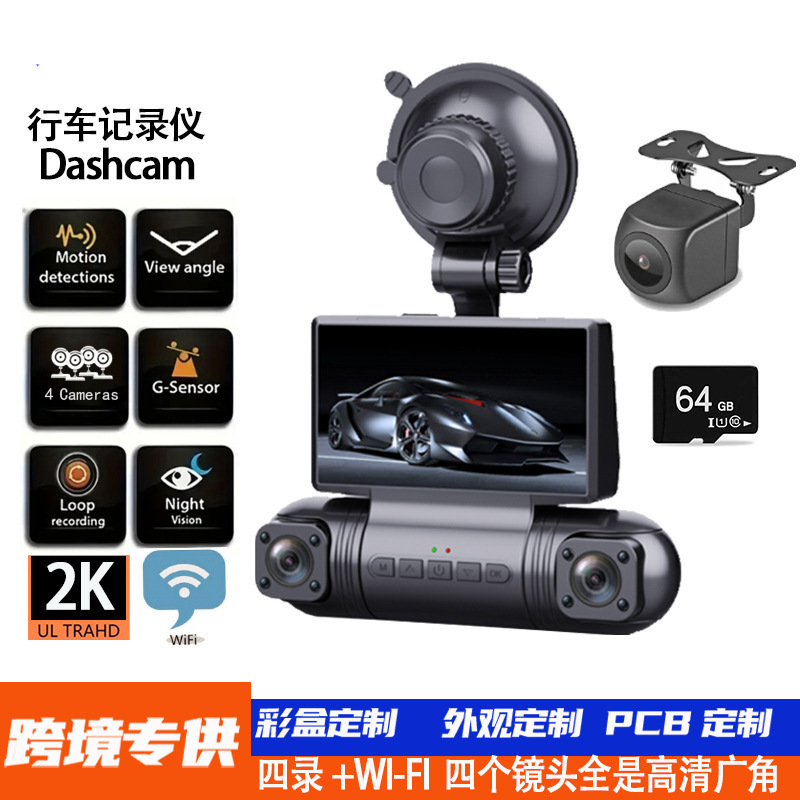 360 ° 새로운 2K 전면 및 후면 왼쪽 및 오른쪽 4 녹화 WiFi 야간 투시경 주차 모드 모니터 자동차 운전 레코더