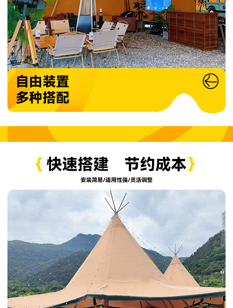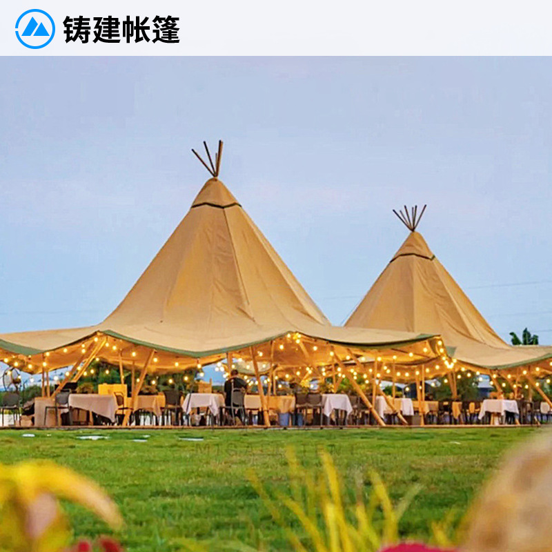 야외 캠핑 티피 인디언 텐트 대형 차양 및 방수 텐트 케이터링 다인 파티 호텔 텐트