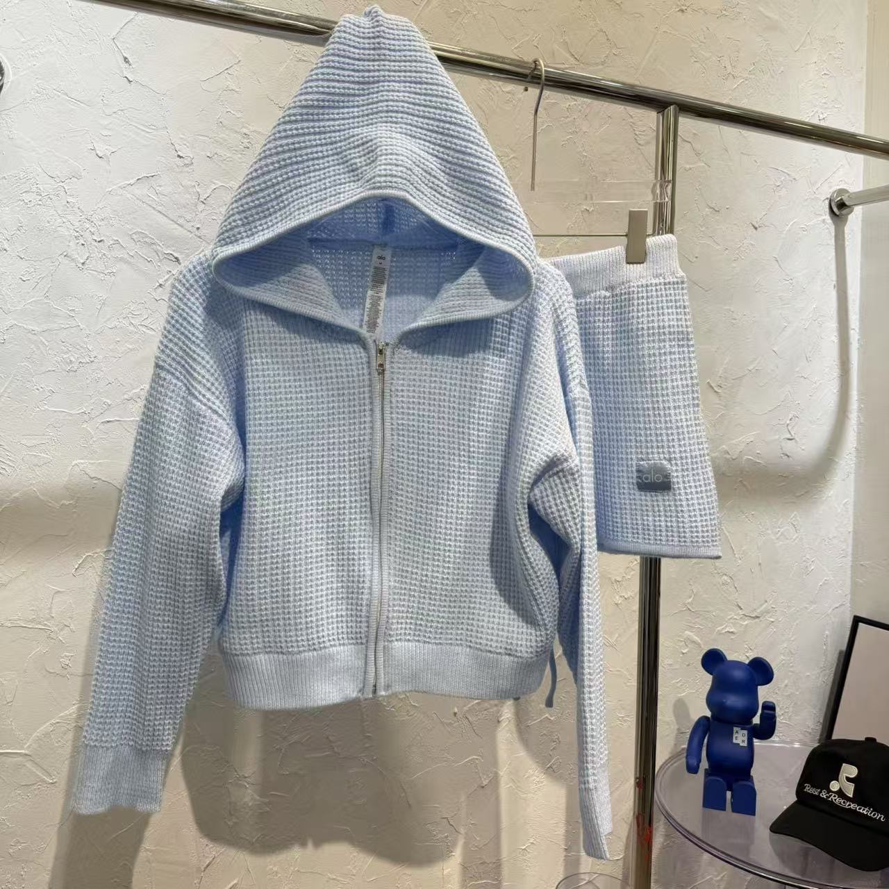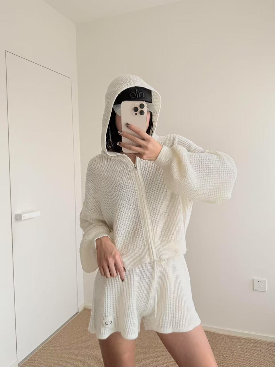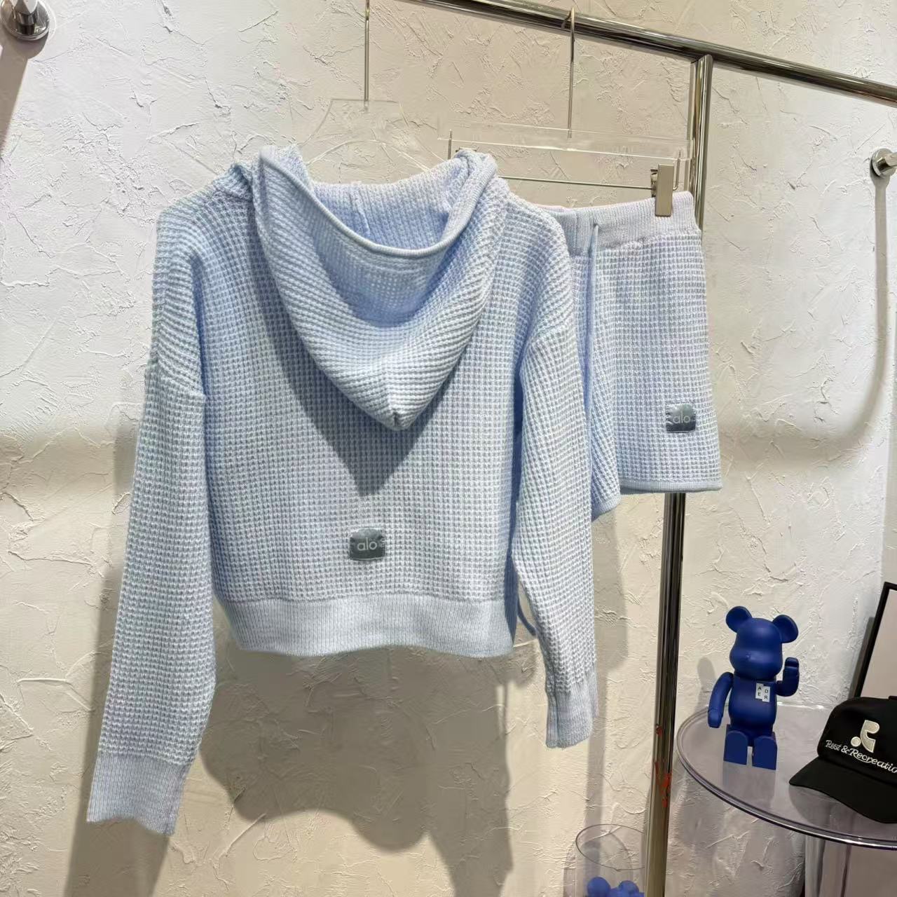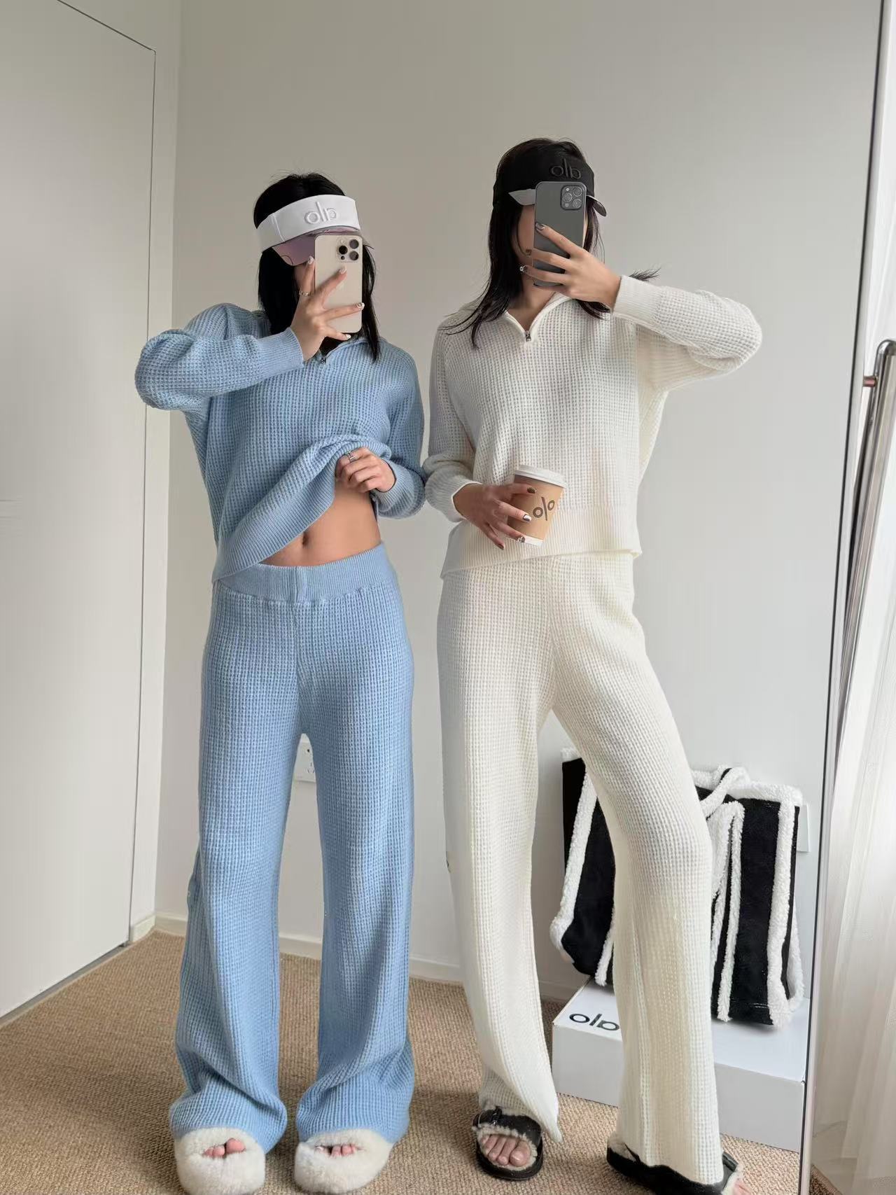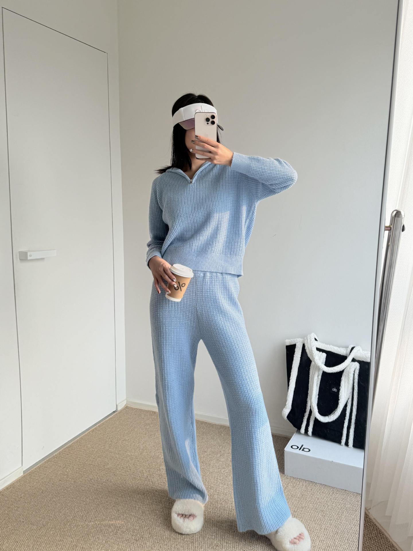 Alo 와플 슈트 후드 스웨터 캐주얼 긴팔 탑 스웨트 팬츠 반바지 조끼의 올바른 버전 재고 있음스토어 가기
