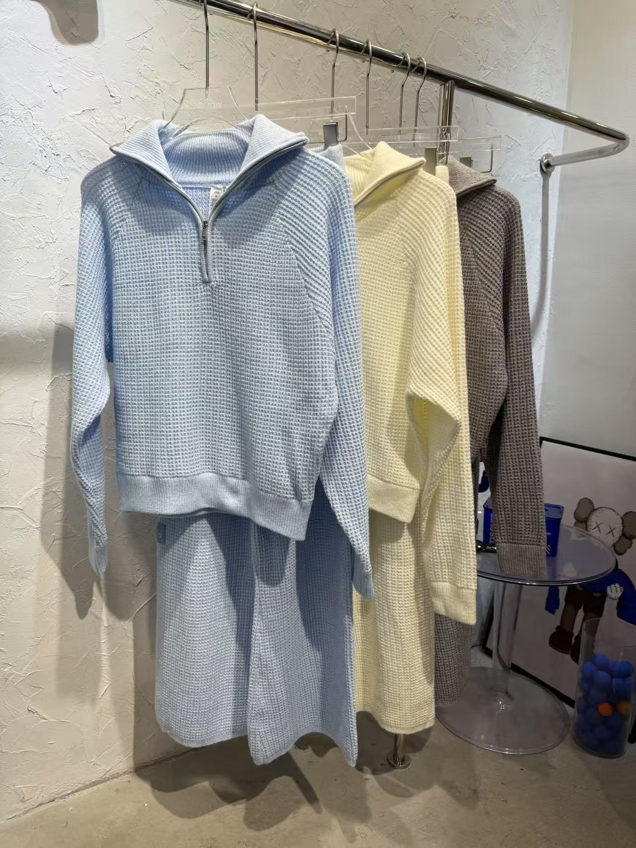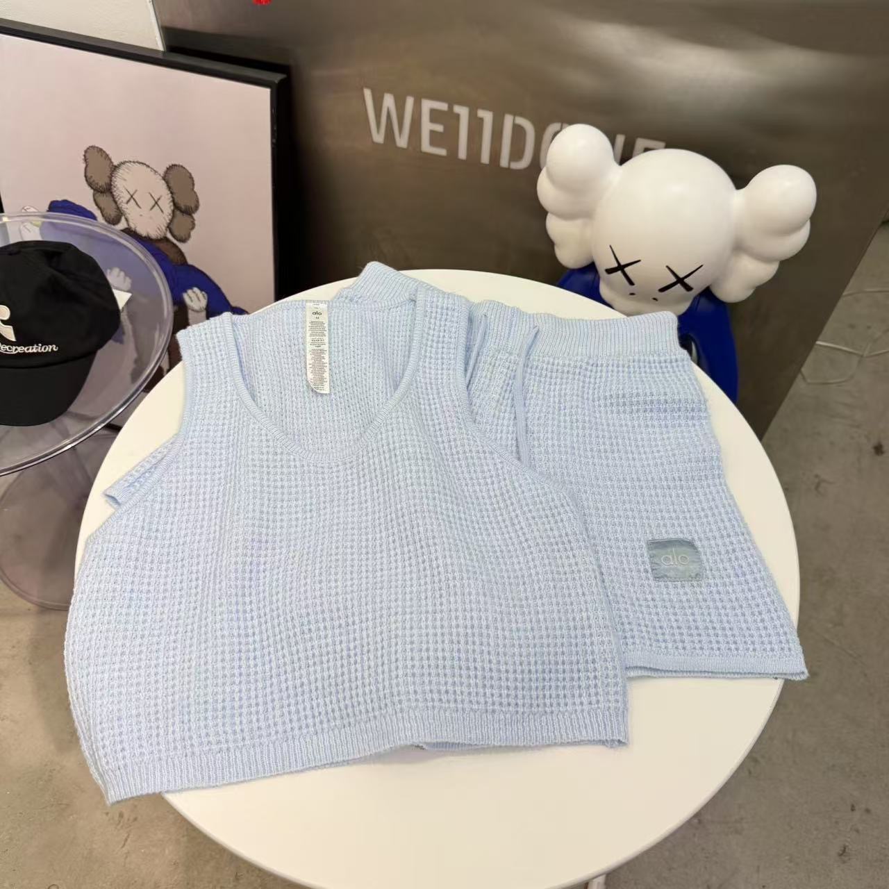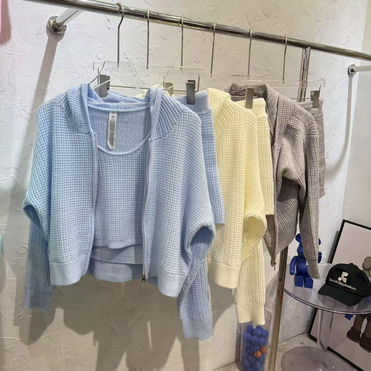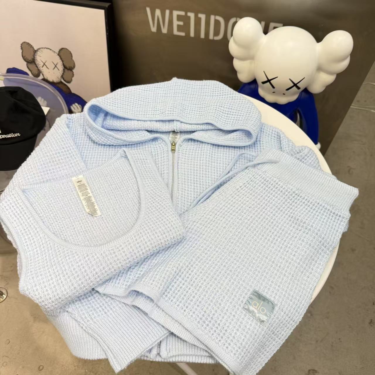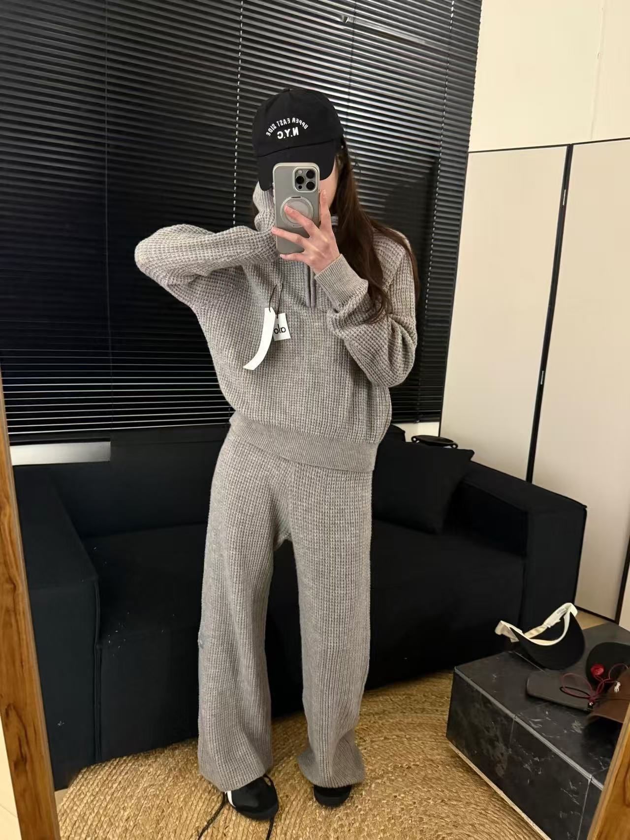 Alo 와플 슈트 후드 스웨터 캐주얼 긴팔 탑 스웨트 팬츠 반바지 조끼의 올바른 버전 재고 있음스토어 가기