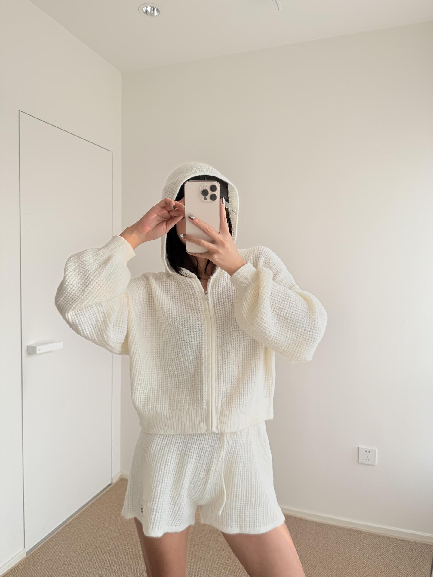 Alo 와플 슈트 후드 스웨터 캐주얼 긴팔 탑 스웨트 팬츠 반바지 조끼의 올바른 버전 재고 있음