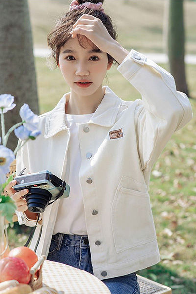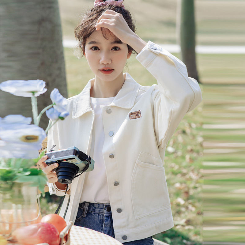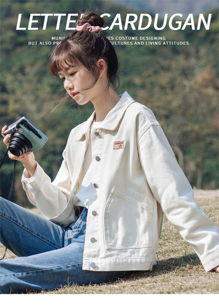 2025 레트로 학생 새로운 홍콩 스타일 긴팔 화이트 데님 재킷 작업 재킷 탑 봄, 가을 여성용 다용도